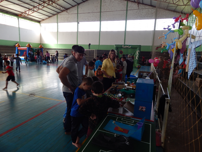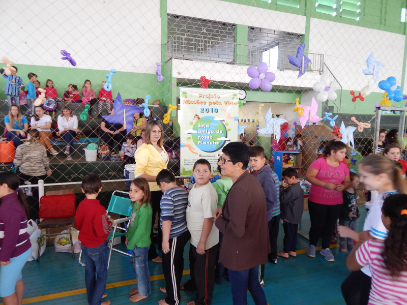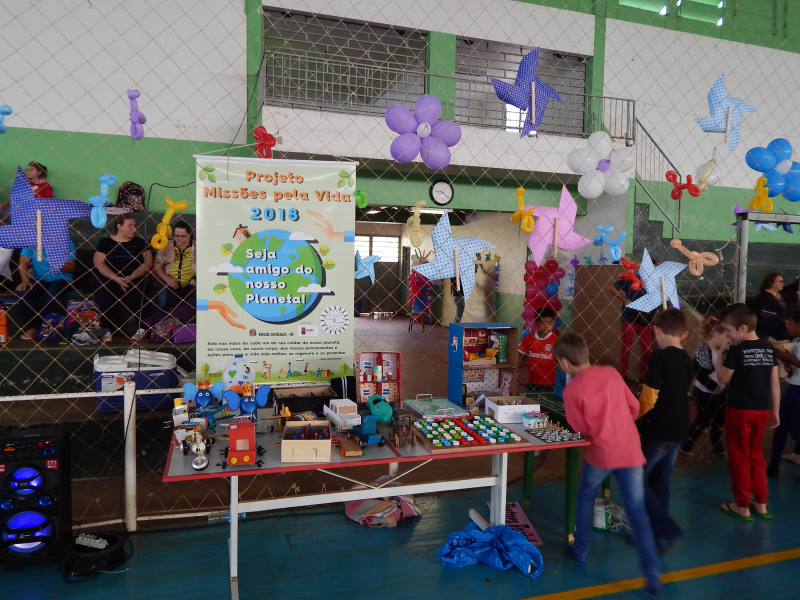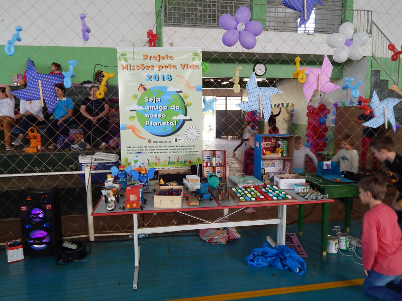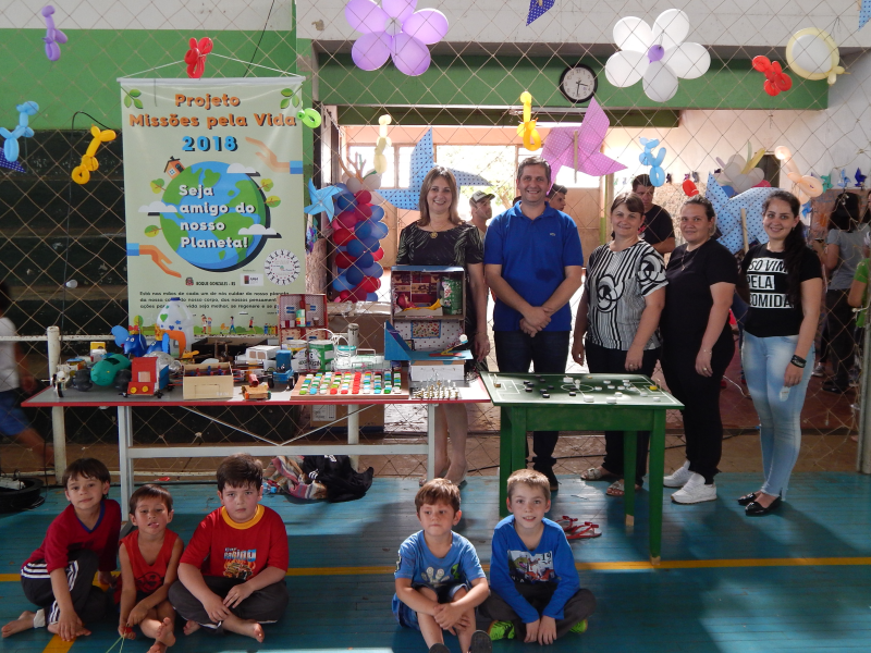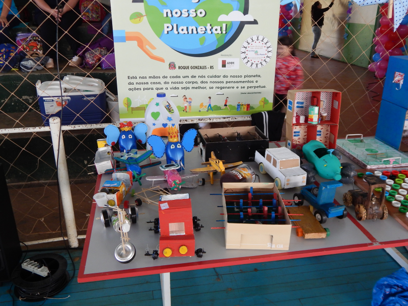 Durante esse dia também, as crianças puderam ver os brinquedos confeccionados com materiais recicláveis que estavam expostos. Os brinquedos foram produzidos por alunos do 1° ao 5° ano da rede municipal, e que fazem parte do Projeto “Missões pela Vida 2018”, desenvolvido pela Associação das Primeiras Damas dos Municípios das Missões - AMM.