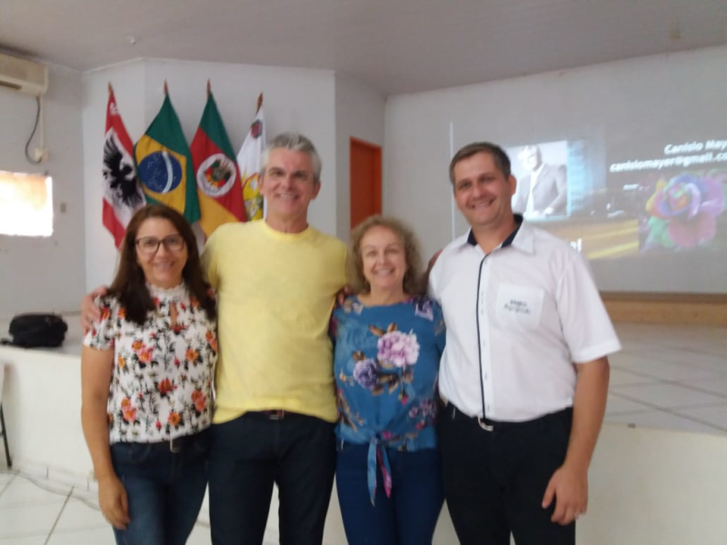 Na terça-feira, 12 de fevereiro, professores da rede municipal de ensino de Roque Gonzales foram recepcionados no auditório da EMEF Santo Antônio de Pádua para a primeira atividade do ano. Os professores tiveram a oportunidade de participar da palestra com o escritor e conferencista Canísio Mayer, que abordou a temática “A arte e os desafios na educação”.