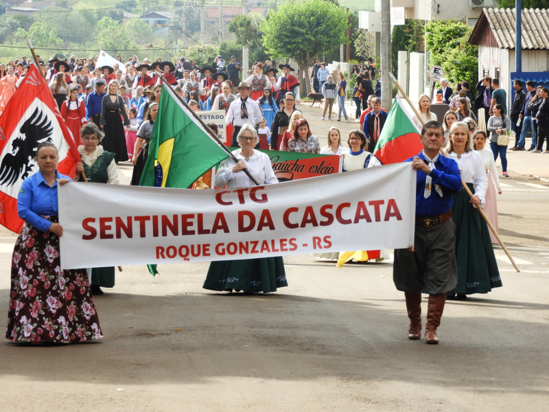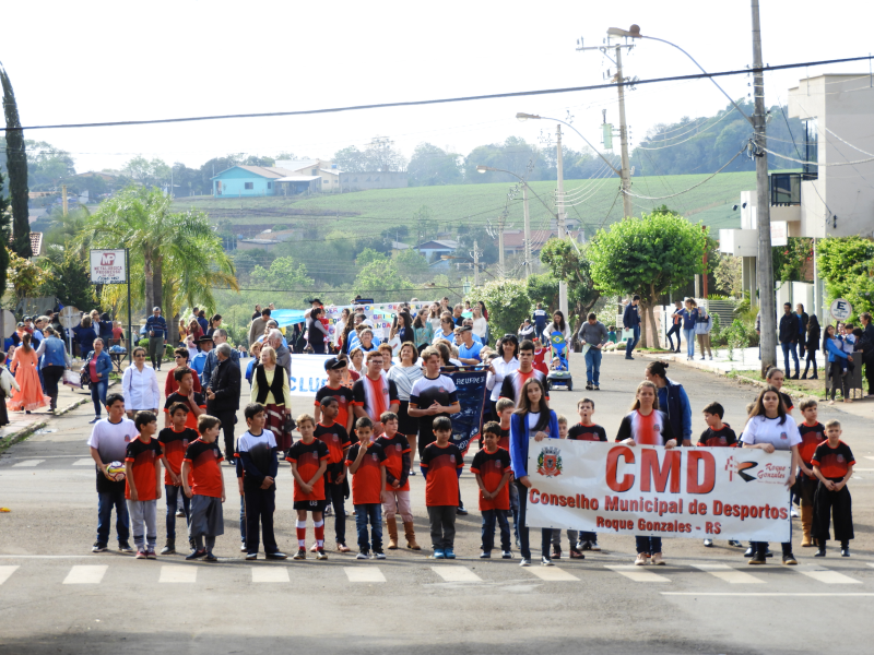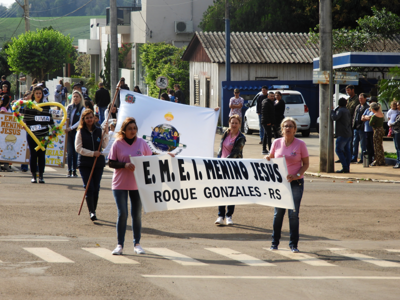 Na sequência escolas da rede municipal e estadual de ensino, apresentaram durante o desfile atividades desenvolvidas pelas escolas durante o ano. Após as escolas o desfile contou com a participação da Emater, Sindicato dos trabalhadores Rurais e Cooperativas que atuam no município, que levaram ao desfile o potencial agrícola de Roque Gonzales. Na continuidade foi a vez do Moto Grupo Fora de Rota e do Grupo Pouca Pratica, realizar um desfile sobre duas rodas. O encerramento do desfile ficou a cargo dos Cavalarianos da Inverna Campeira João Vier do CTG Sentinelas da Cascata, que além do tradicionalismo, levou para desfile um pouco da história dos jesuítas e guarani.