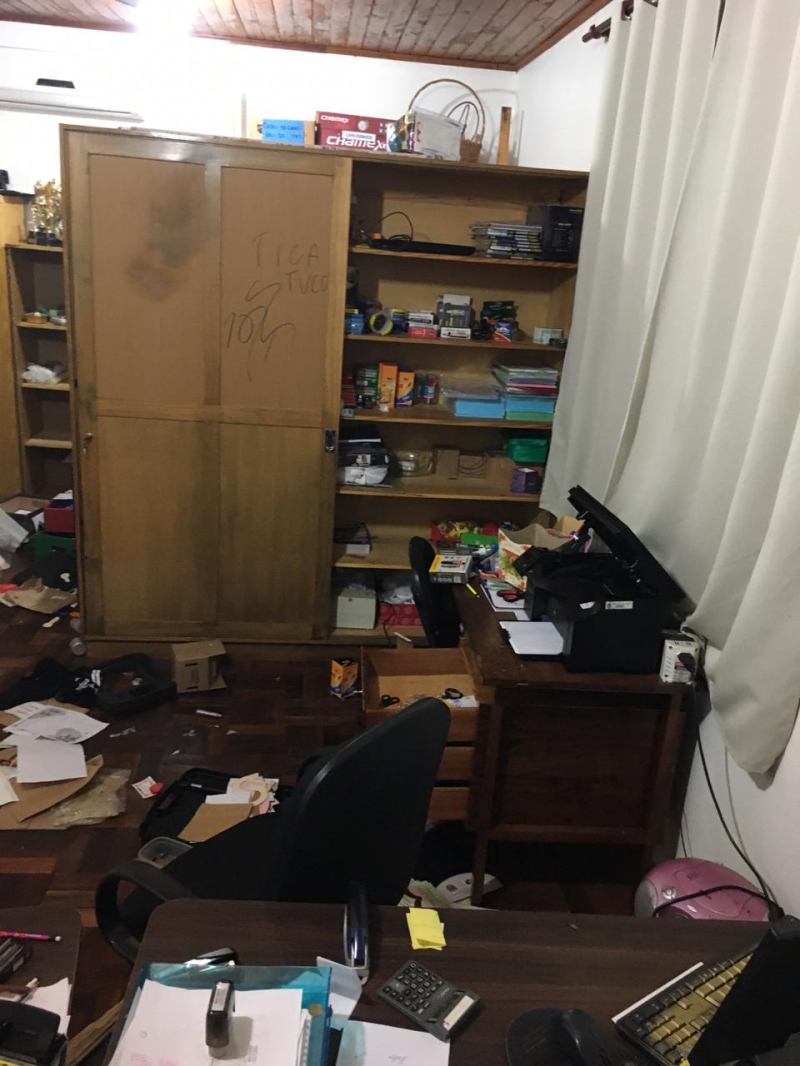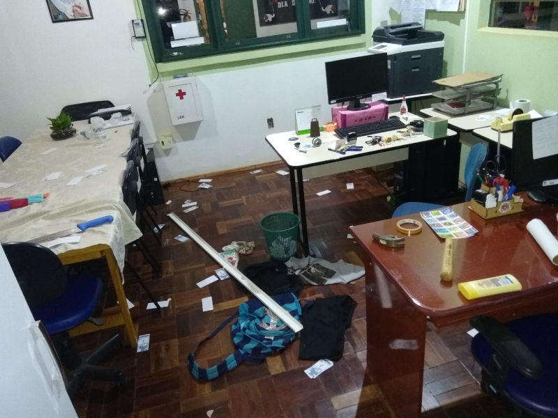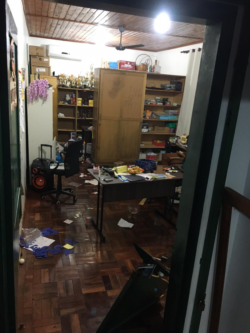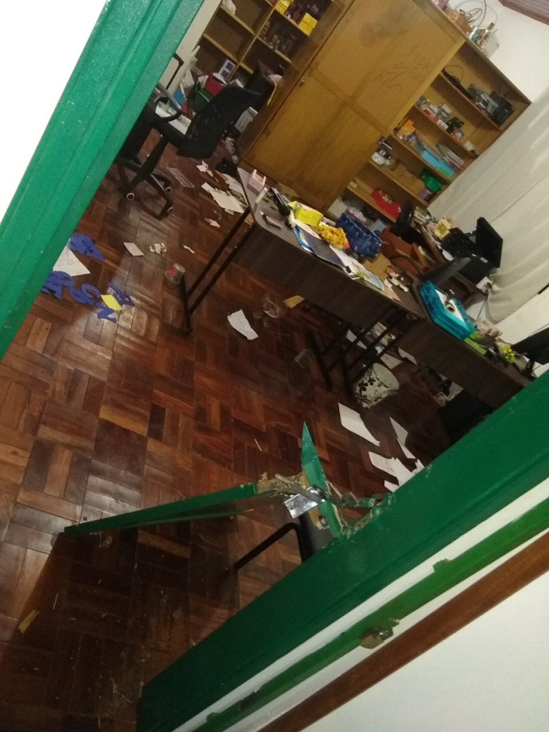 Além do arrombamento a escola sofreu atos de vandalismos, como destruição de matérias, pichações além das salas reviradas.