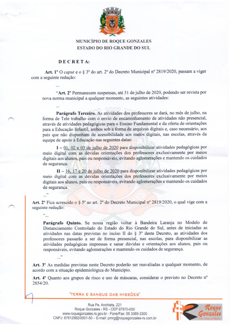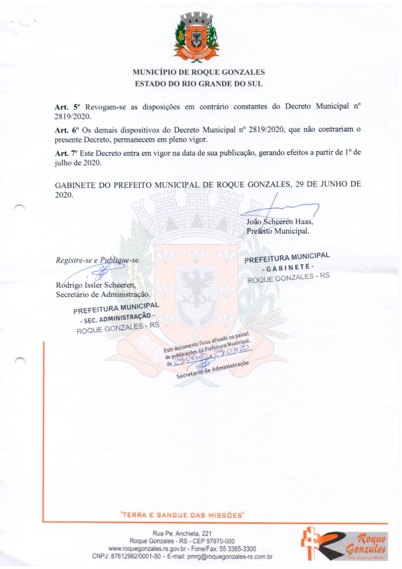 O Decreto n° 2.864/2020, está disponível no link https://www.roquegonzales.rs.gov.br/site/leis/71599-decr