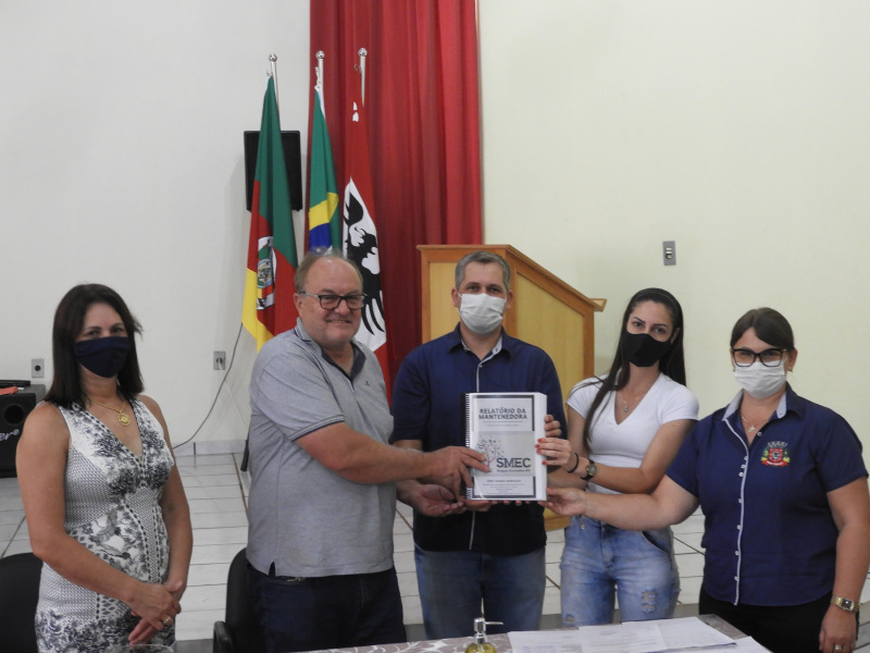 Na oportunidade, também foi entregue o Relatório da Mantenedora ao Conselho Municipal de Educação representado pela Presidente Cibele Machado para que o mesmo tenha a validação do corrente ano letivo devido as atividades escolares não presenciais.