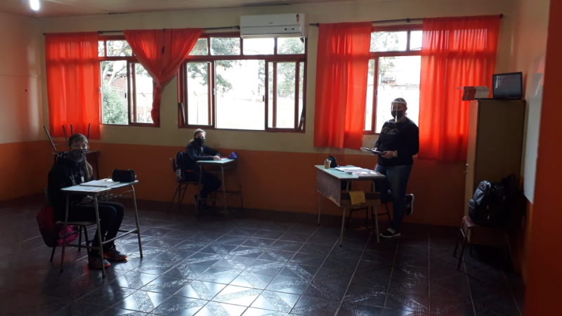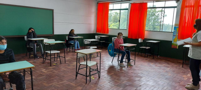 As salas terão o máximo 50% da ocupação, por isso, as turmas de Educação Infantil ao 9º ano do Ensino Fundamental foram divididas em grupos escalonados. Cada grupo terá períodos de aulas presenciais e outra de atividades remotas.