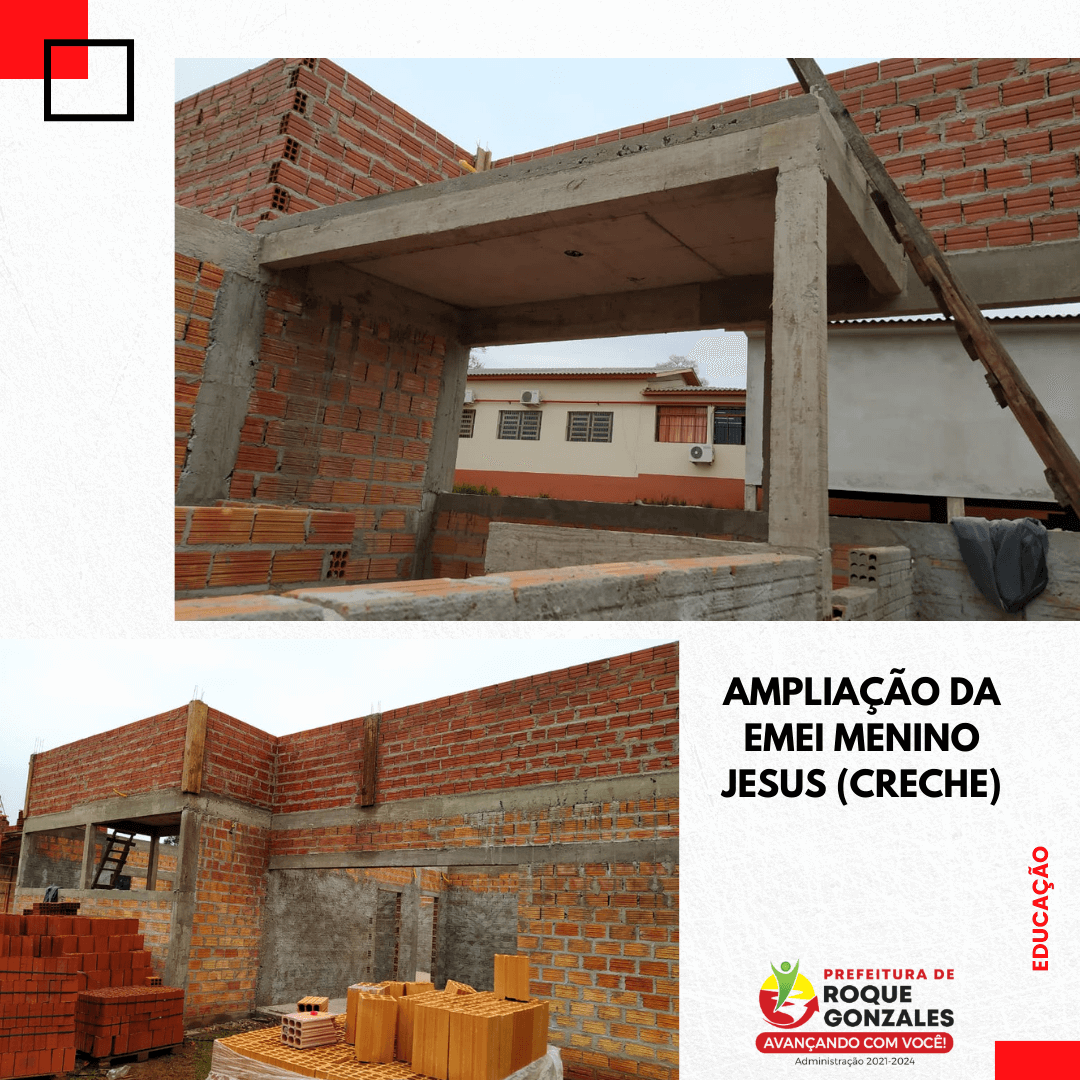 Administração Municipal continua realizando a obra de ampliação da Escola Municipal de Educação Infantil Menino Jesus (CRECHE)