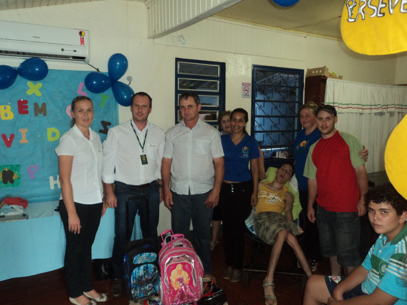 Wilson Thille, gerente do SICRED, doou em nome da Cooperativa que representa, material escolar para os alunos do educandário; o poder público representado pela primeira dama e secretárias presentes, reafirmaram o compromisso já existente com a APAE.