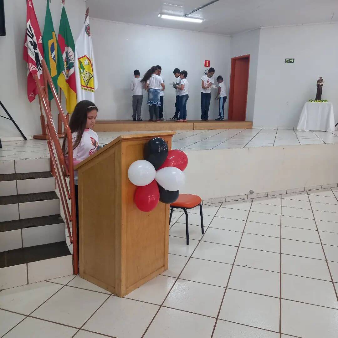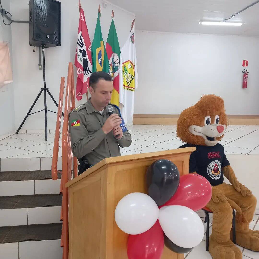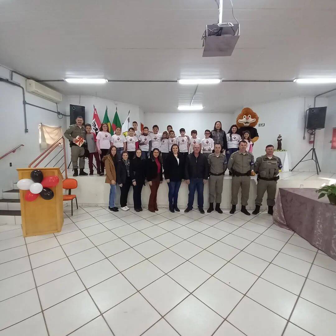 👔 Com presença de autoridades do Município e Militares as crianças apresentaram uma encenação do que aprenderam, receberam os certificados e duas alunas tiveram destaque, com Melhor Redação para aluna Isabelly da Rosa Peter e Medalha de Aluna Destaque para aluna Keila Vitória Oliveira da Silva.