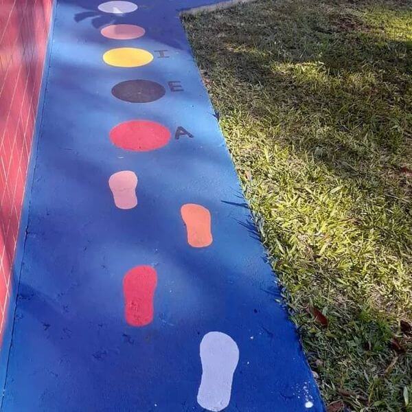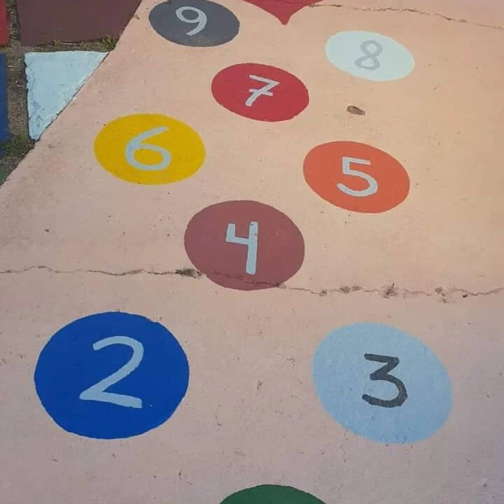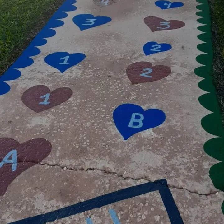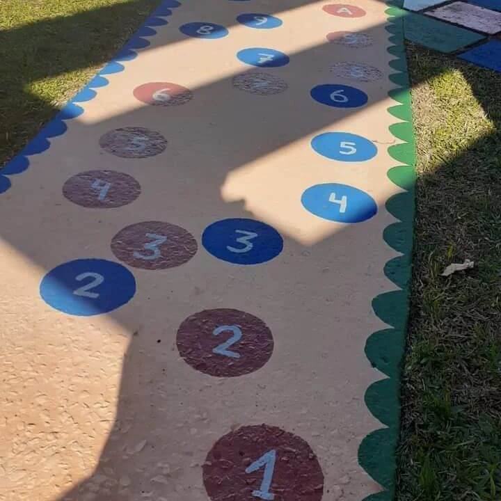 🎨 Foram realizadas pinturas, em formato de jogos pedagógicos, nas calçadas que contemplam o pátio da escola e são áreas de lazer e atividades para as crianças da Creche.