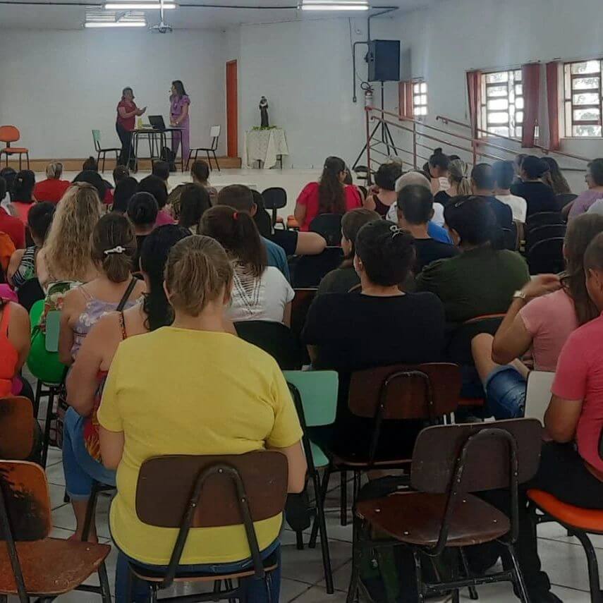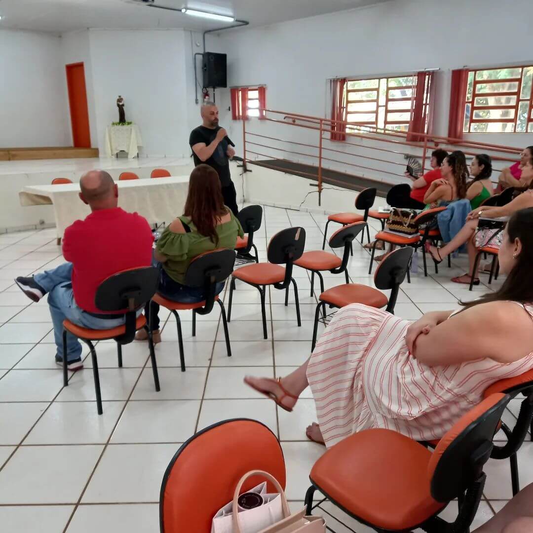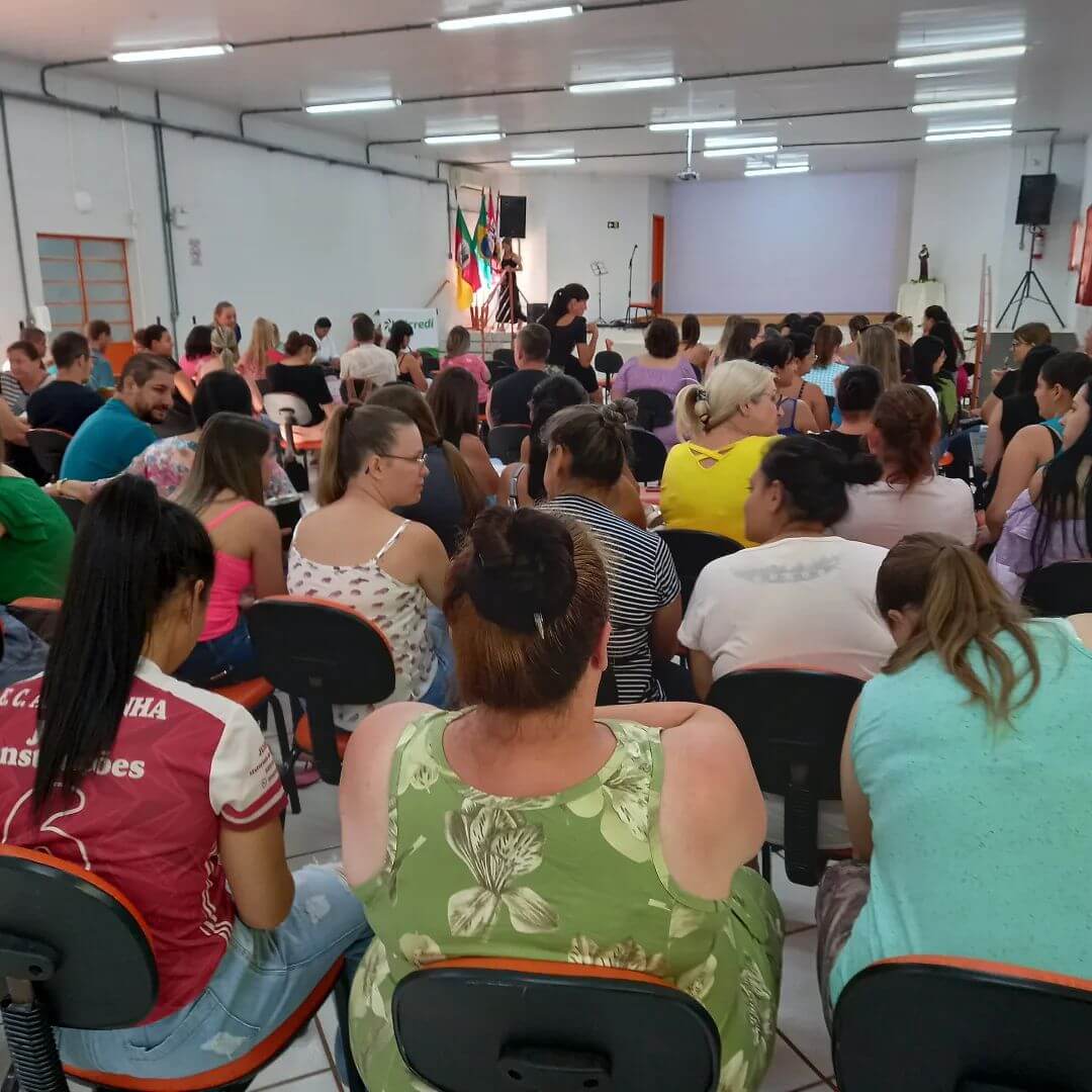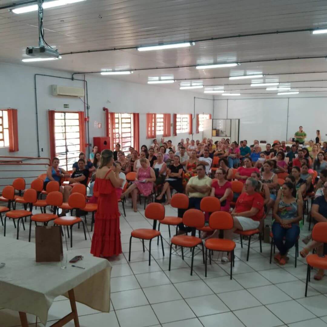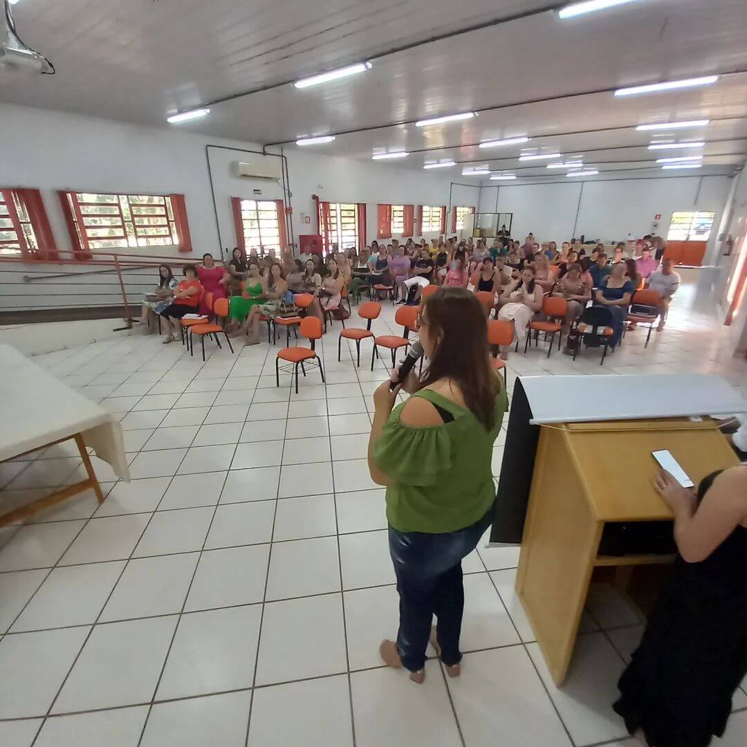 📒 Pela parte da tarde, os profissionais da Educação tiveram a palestra Show Felicidade no Trabalho ministrada pela psicóloga Marianita Ortaça. Em seguida, Palestra Teatral Motivação para uma vida pessoal e profissional mais feliz com Diana Ceolin.