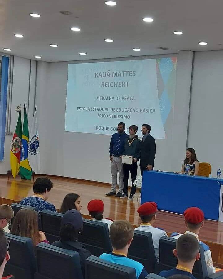 🏆 A medalha dá a eles a matrícula em um Curso de Iniciação Científica, com aulas semanais, e uma bolsa de estudos remunerada.