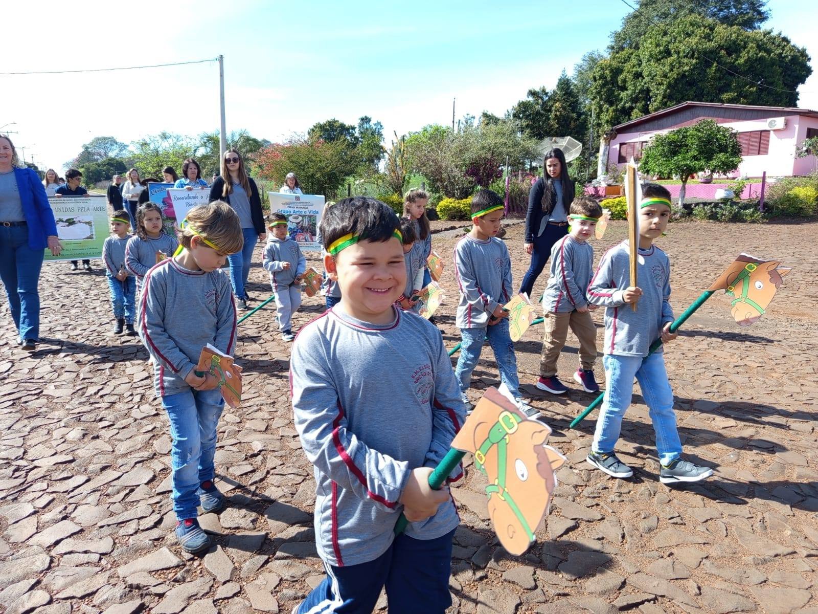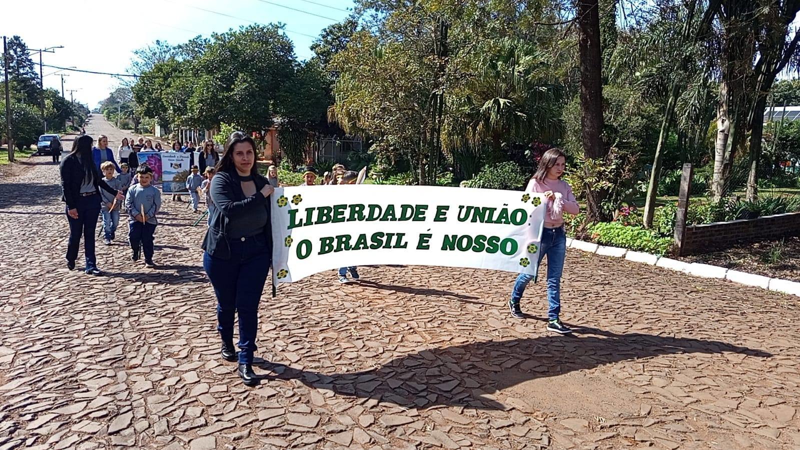 A cerimônia reuniu autoridades locais, entre elas o prefeito Fernando Mattes Machry, o vice-prefeito José Alfredo Kupske — que desfilou segurando a Bandeira do Brasil —, o presidente da Câmara de Vereadores Rudinei Scheeren, demais vereadores, a secretária de Educação Marilene Cruz Both e a diretora de Educação Gicelda Ledur, que prestigiaram o ato cívico ao lado da comunidade.