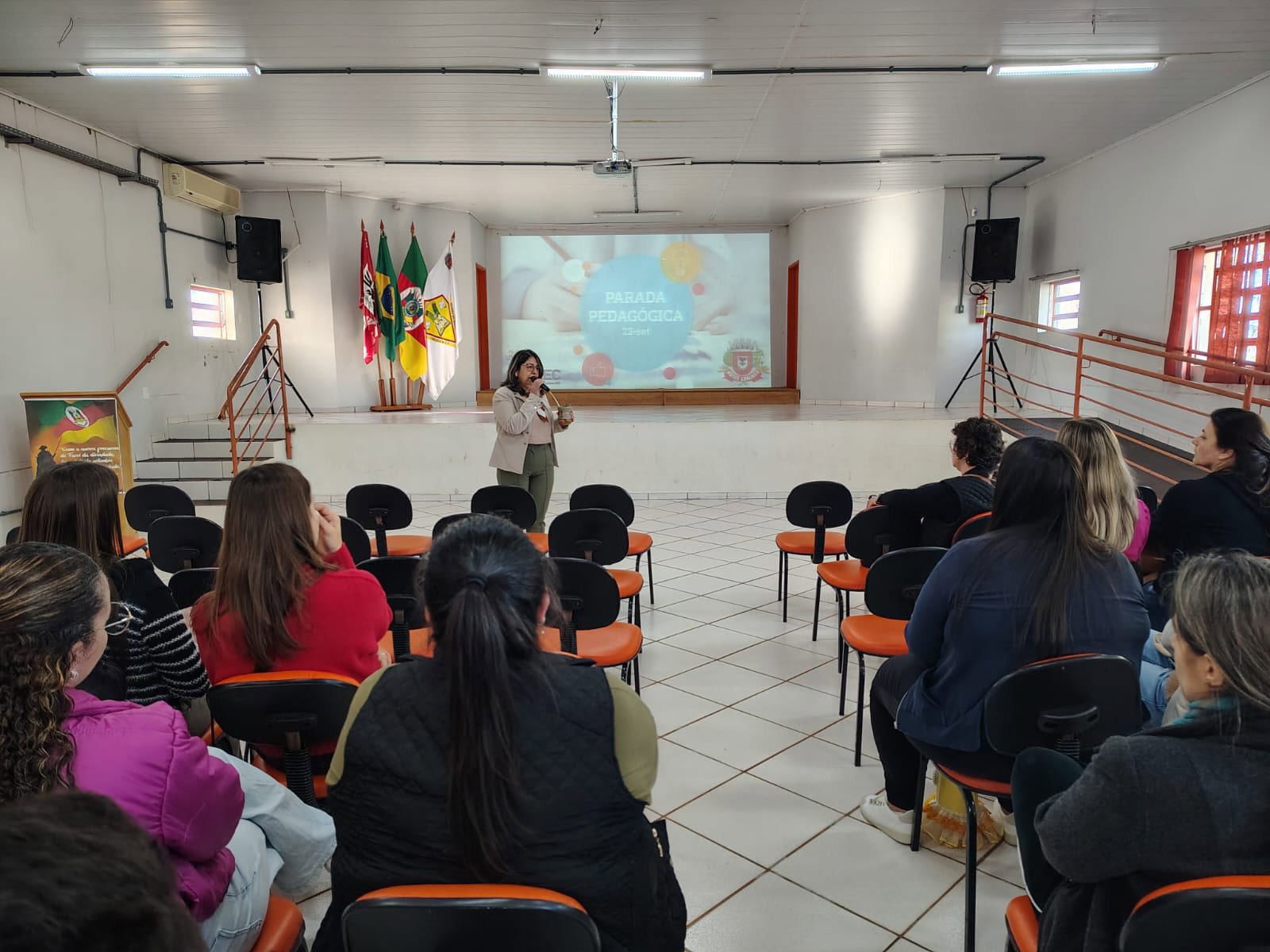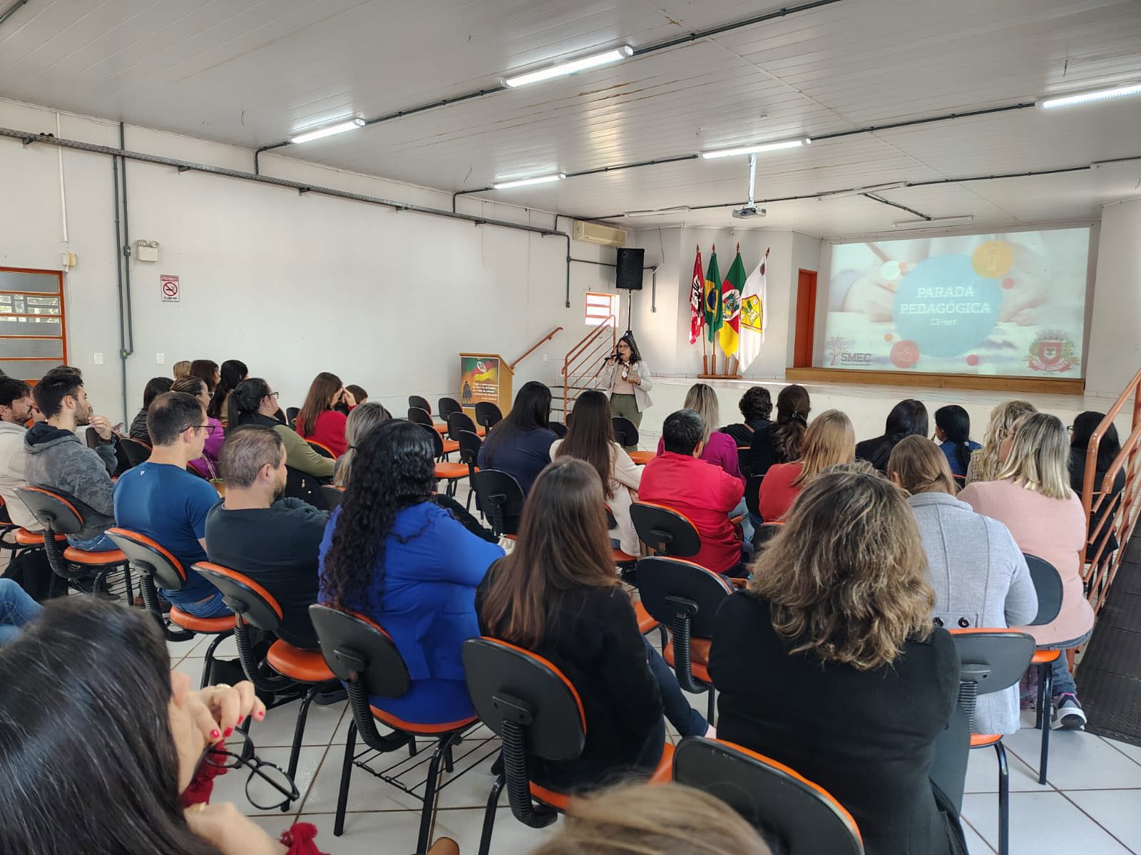Nesta terça-feira, dia 23, no Auditório da EMEF Santo Antônio de Pádua aconteceu mais uma edição da Parada Pedagógica, promovida pela Administração Municipal por meio da Secretaria de Educação. O encontro reuniu professores da Rede Municipal para o debate de temas centrais no processo de ensino e aprendizagem.
