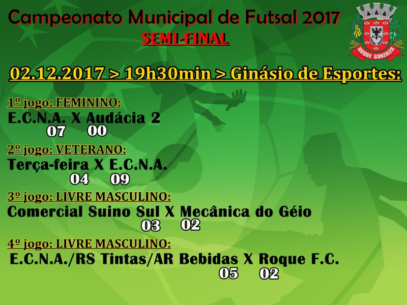 Placar da Rodada do Campeonato Municipal de Futsal 2017