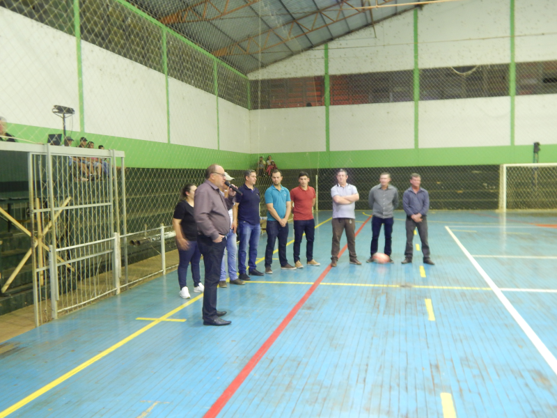 O prefeito João Scheeren Haas deu o pontapé inicial do Campeonato Municipal de Futsal 2018. A competição foi aberta oficialmente na noite do último sábado,18 de agosto, no Ginásio de Esportes da Escola Erico Verissimo, com a presença também de outras autoridades do município, como os vereadores Aristeu Machry e Adelar Barbosa, os secretários municipais da Administração Andrei Becker, da Agricultura Sirineu Gottardo, de Finanças Luiz Carlos Mallmann, de Educação, Cultura e Turismo Tiarles Wust, Presidente do Conselho Municipal de Desporto Valmir Kist e da Diretora do Departamento de Esporte e Lazer Andiara Ferreira, bem como dos times que participaram da primeira rodada do campeonato.