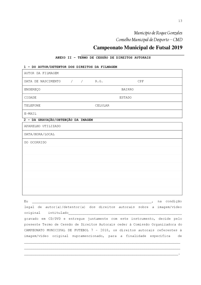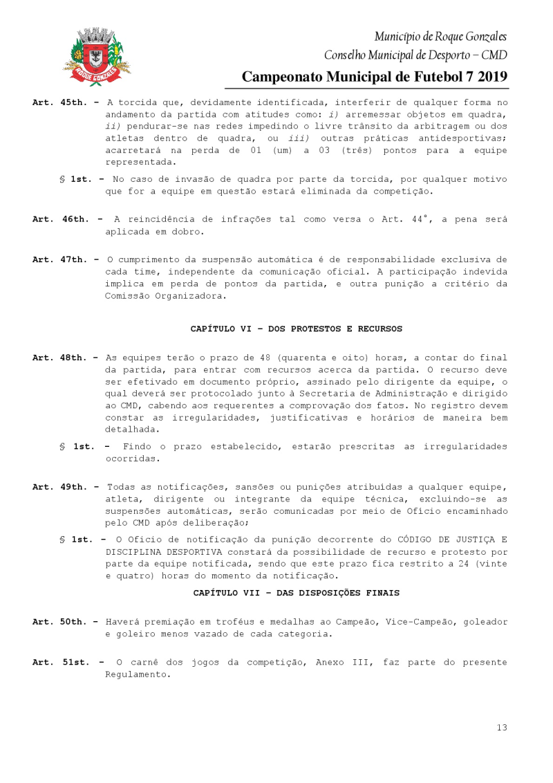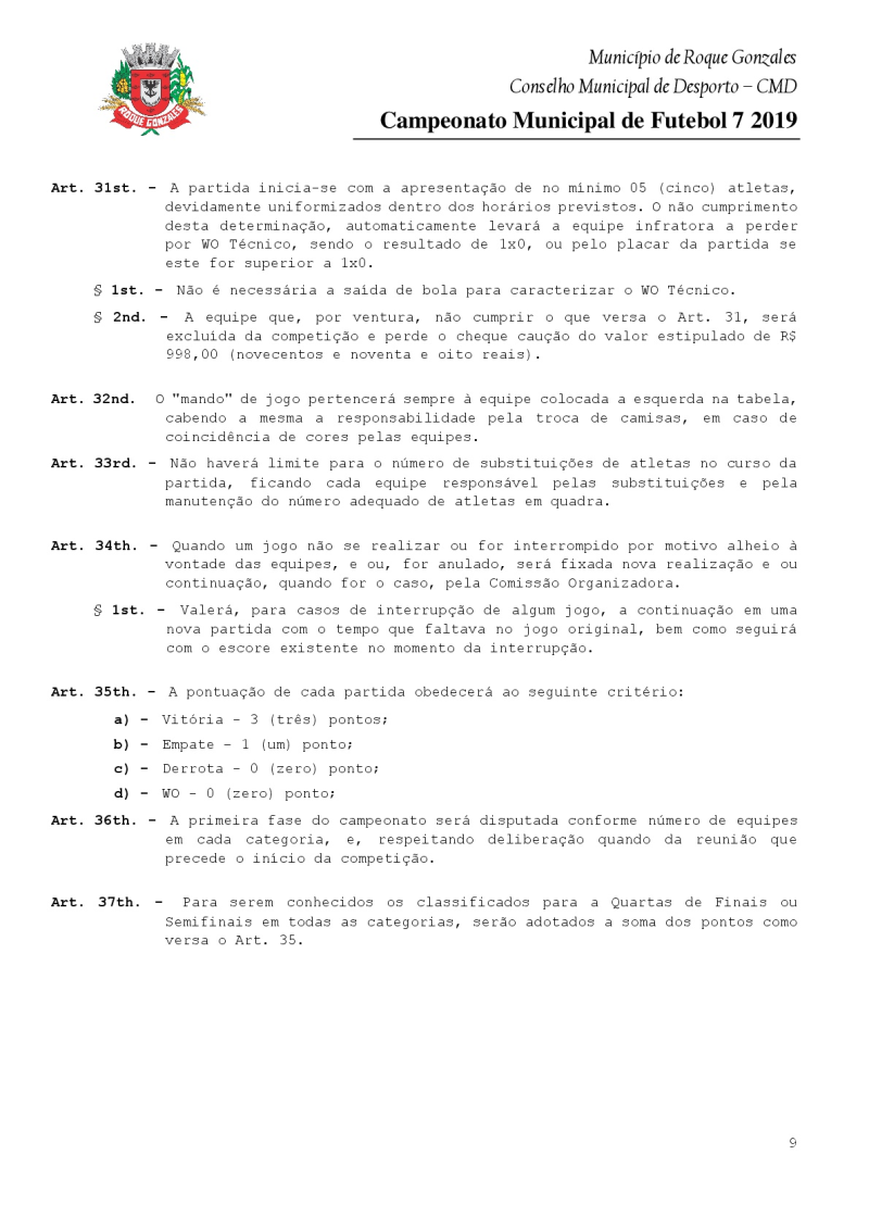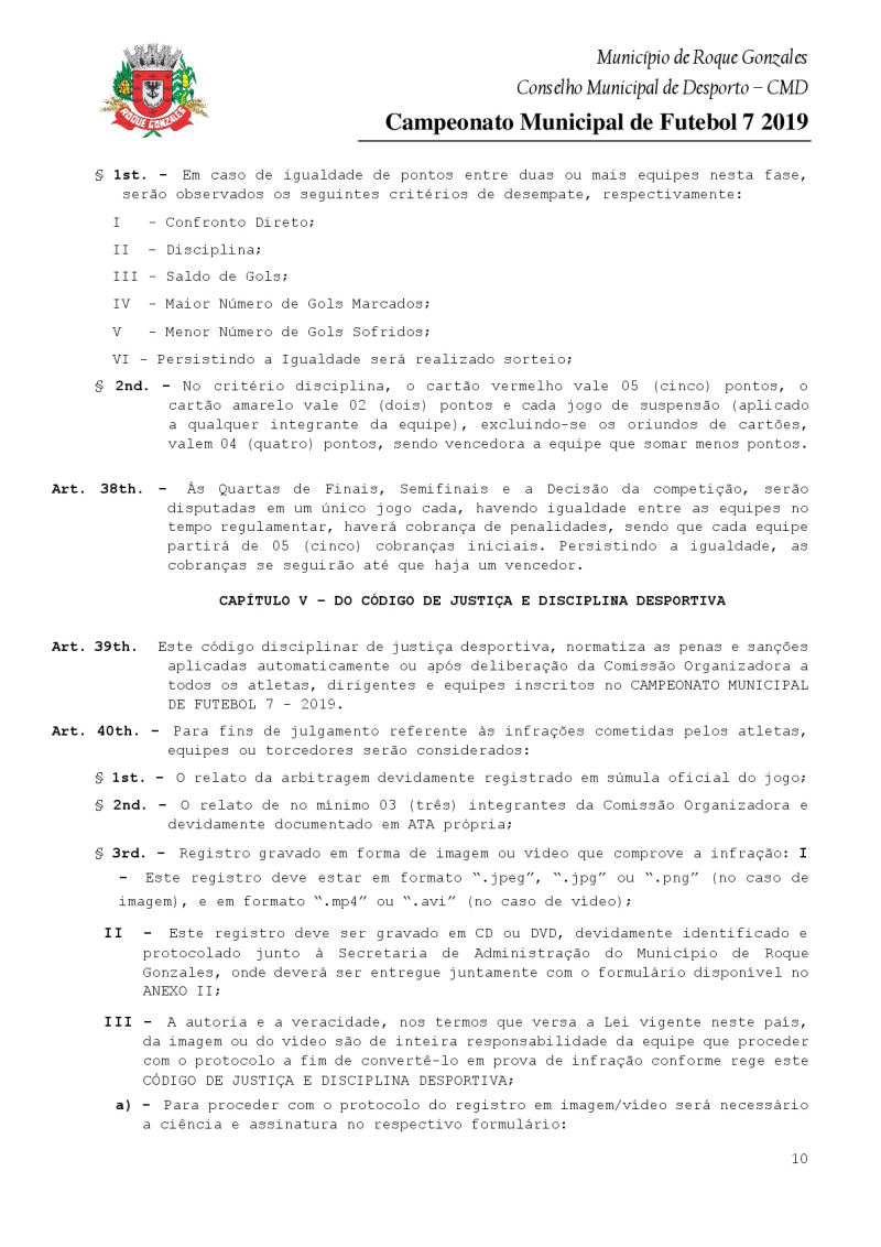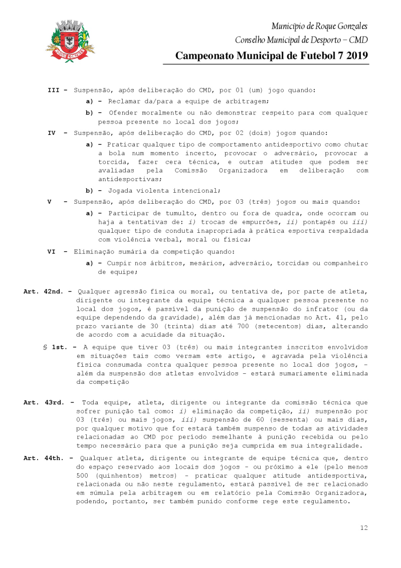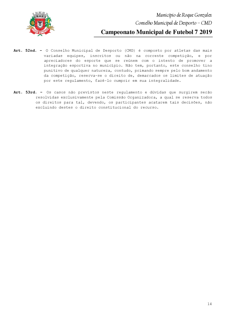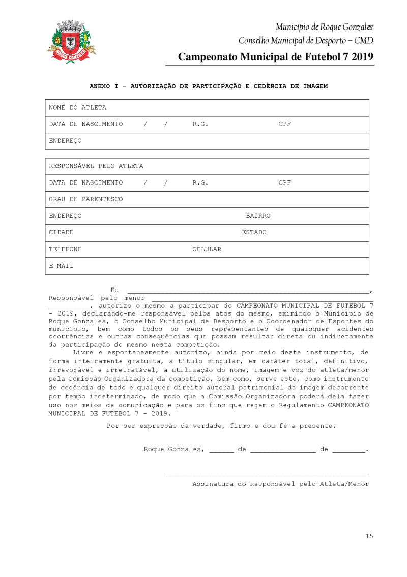 Estão à disposição as fichas de inscrição do Campeonato de Futebol 7 edição 2019 em Roque Gonzales. Neste ano o campeonato será composto por categoria masculina livre e veteranos, e categoria feminina.