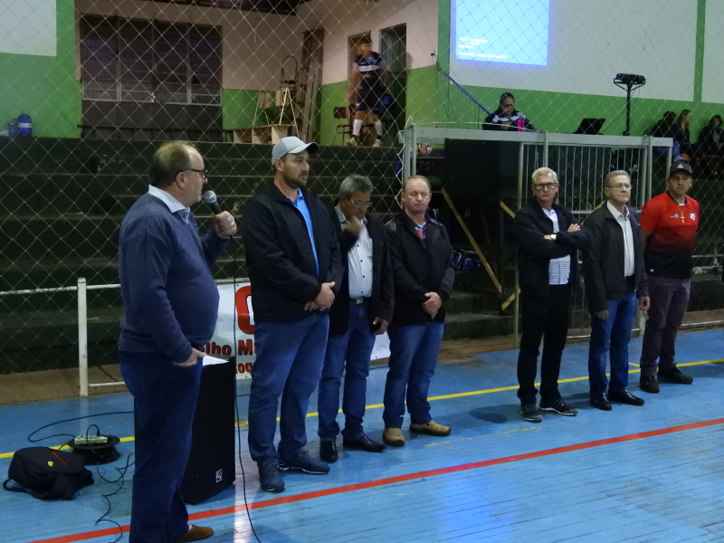 No sábado,31 de agosto, foi iniciada a disputa de mais um Campeonato Municipal de Futsal. Antes da bola rolar para a primeira partida da noite, foi realizada a cerimônia de abertura da competição, que contou com a participação do prefeito João Scheeren Haas, o vice –prefeito Paulo Justen, os Secretários Municipais de Educação Cultura e Turismo João Kercher, de Obras Moacir Issler, de Agricultura e Meio Ambiente Alceu Leitzke, de finanças Luís Carlos Mallmann, Diretora do Departamento de Esportes Andiara Ferreira, Presidente do CMD Valmir Kist e dos vereadores Rudinei Scheeren e Adelar Barbosa..