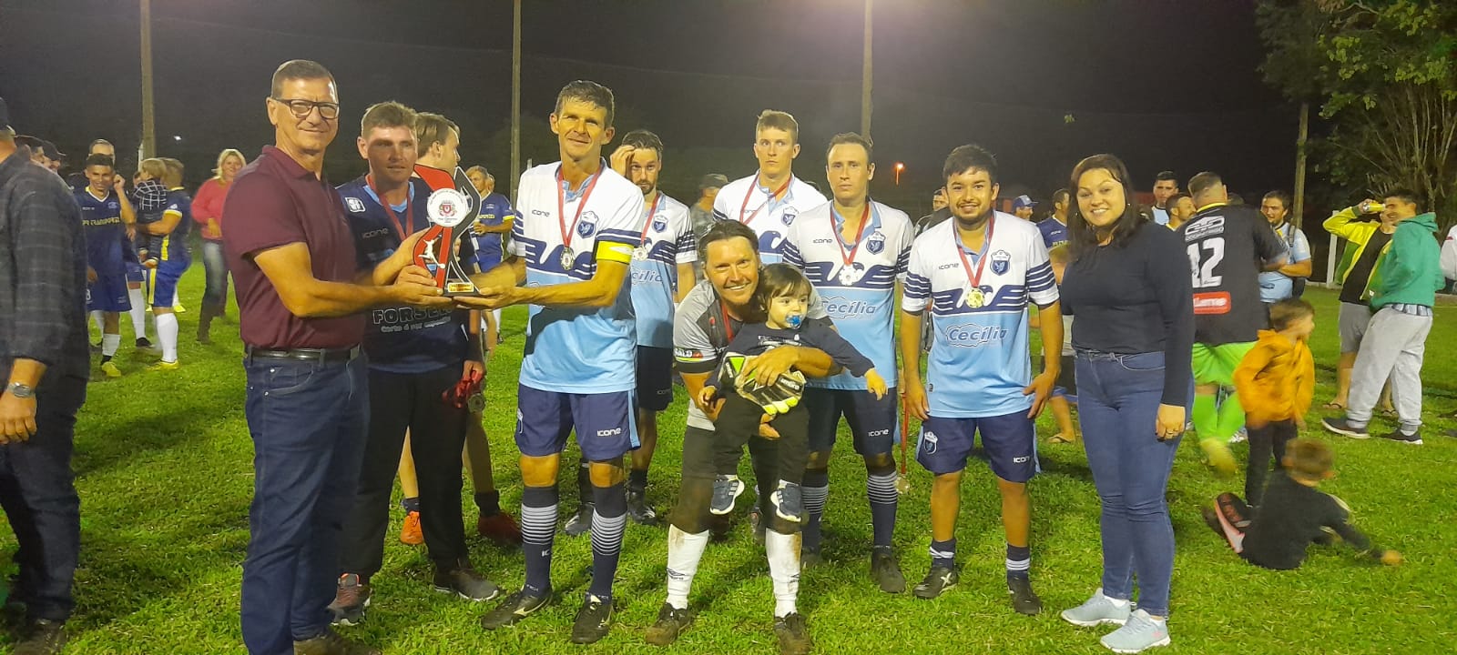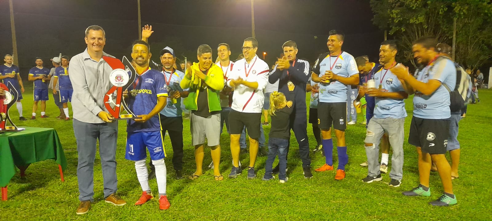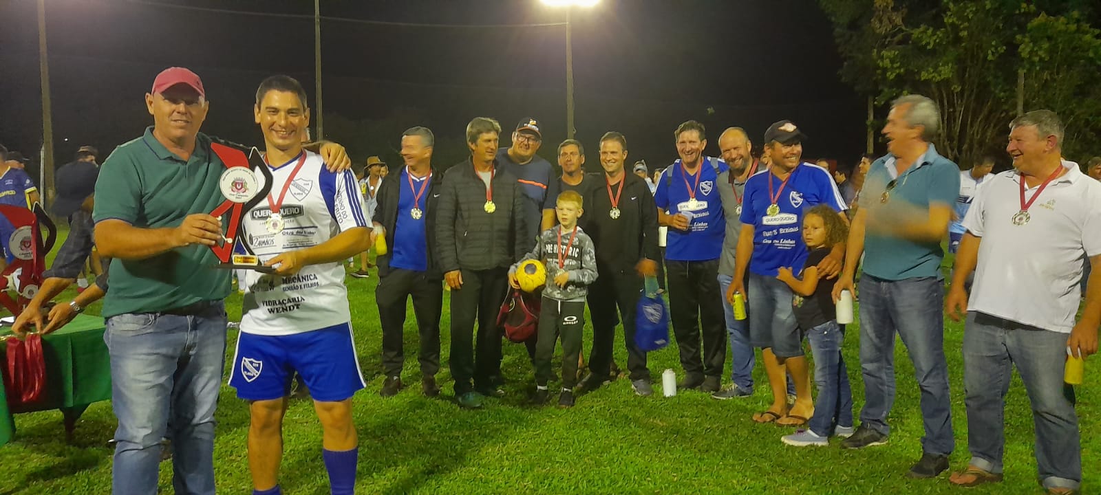 📆No último sábado (26), aconteceu a Final do Campeonato Municipal de Futebol Sete "Taça Adair Vicente de Brum" organizado pelo Departamento de Esportes em parceria com o CMD de Roque Gonzales, no campo da ASSERMURG disputado nas categorias Livre e Veterano masculino totalizando 13 equipes - 9 na categoria Livre e 4 na categoria veterano.