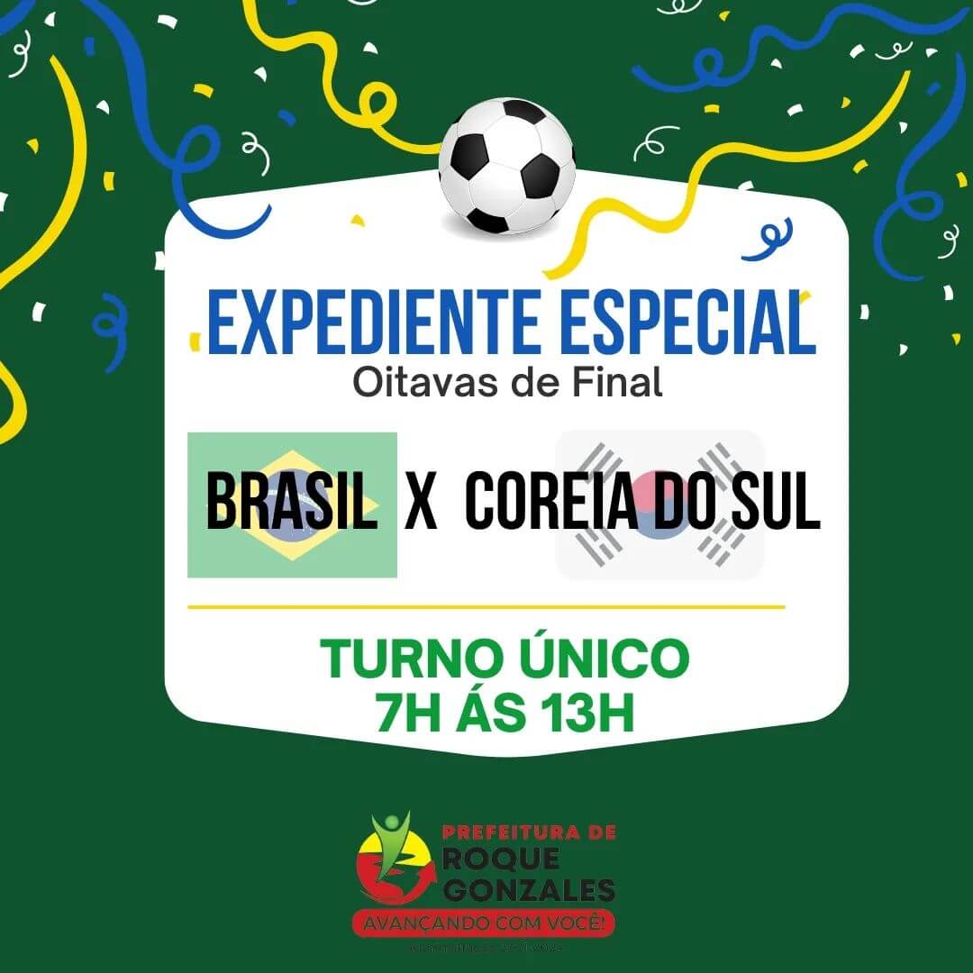 🏟 Nos dias que acontecerão os jogos as repartições públicas, com exceção das Escolas Públicas, terão turno único ou diferenciado conforme a Seleção Brasileira se classificará nas fases eliminatórias: