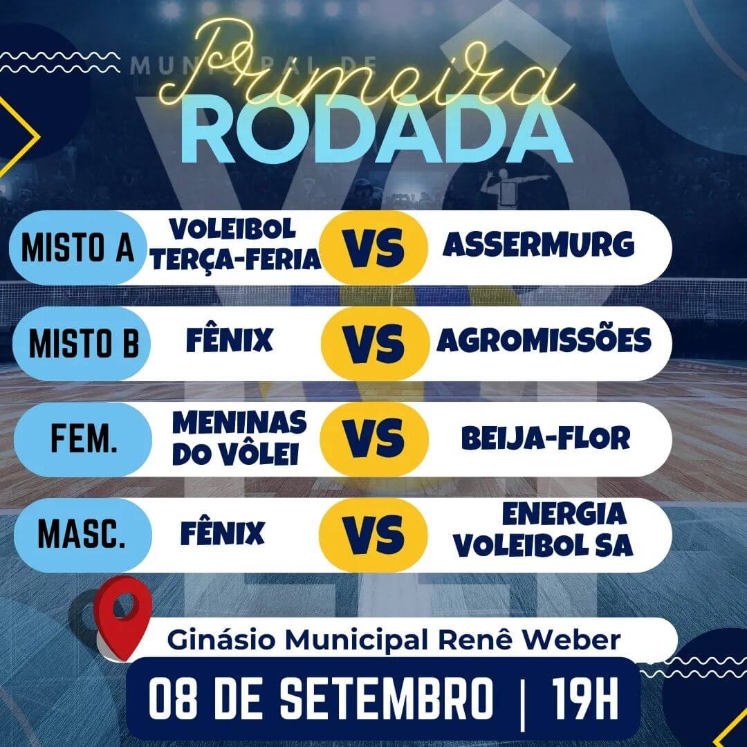 🏟 Com início às 19 horas desta sexta-feira, dia 08 de setembro no Ginásio Municipal Renê Weber no Bairro Santo Antônio.