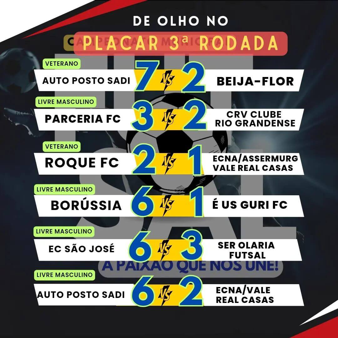 PLACAR DA RODADA DOS CAMPEONATOS DE VÔLEI E FUTSAL