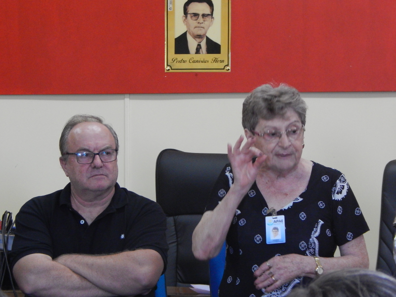 A presidente da instituição Mônica Reichert deu início a reunião apresentando detalhadamente a atual situação que se encontra a APAE local, na qual vem mantendo-se através de doações de pais e colaboradores, e que devido à falta de prestações de contas do anos anteriores, inviabiliza a APAE de captar recursos do poder público. Emocionada a presidente Mônica destacou a importância do trabalho que vem sendo realizado todos esses anos, e que APAE não e autossustentável necessitando de ajuda de todos. Atualmente a APAE faz atendimento a 22 alunos.