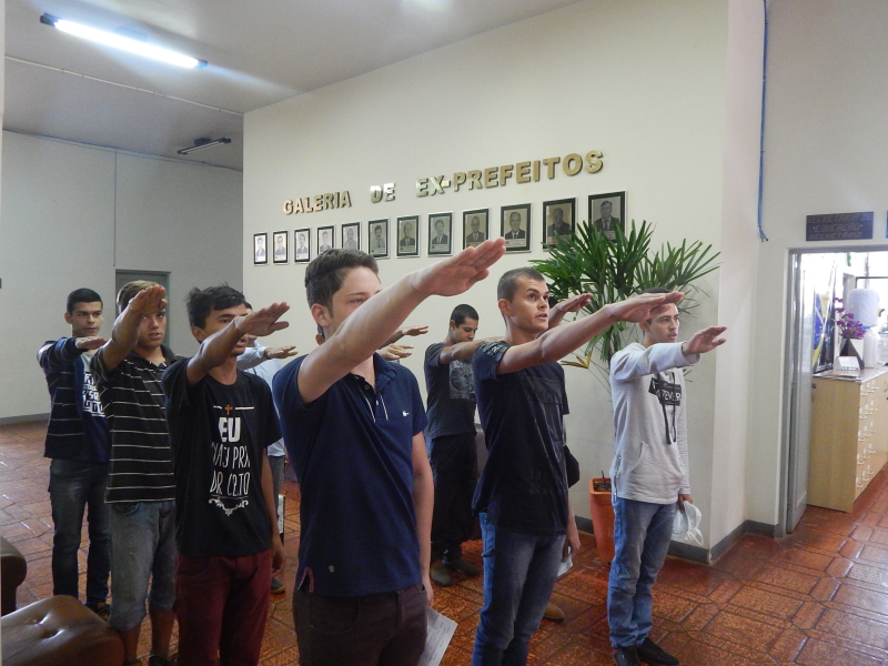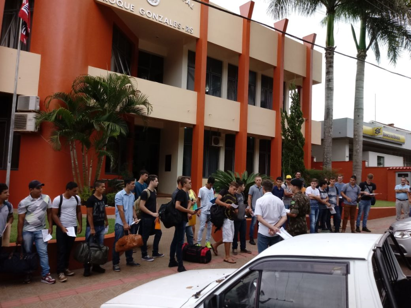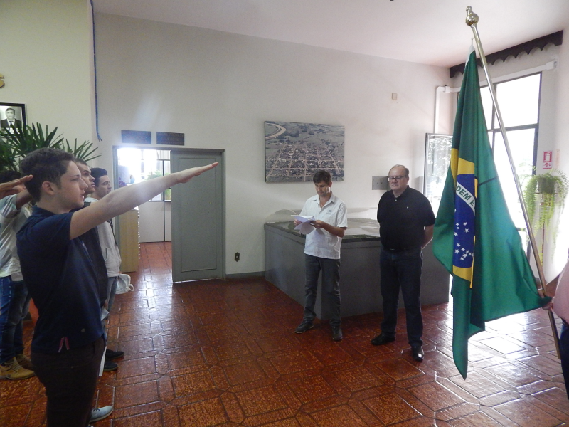 Durante a cerimônia, conduzida pelo secretário da Junta de Serviço Militar Sr. Jaime Sebastiany, os jovens fizeram o juramento à bandeira e receberam o Certificado de Dispensa de Incorporação, que isenta os cidadãos à prestação do serviço militar.