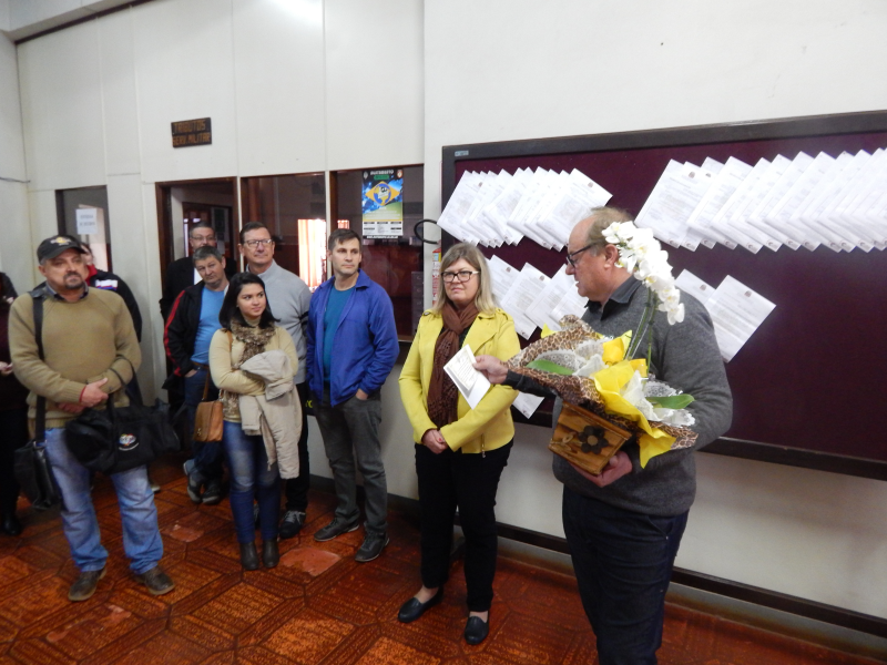 Na tarde de segunda-feira, 30 de julho, foi homenageada pela Administração Municipal e pelos colegas a servidora Leoni Maria Wagner, que superando dificuldades, vem desempenhando suas funções de forma eficiente, e assim não interrompendo as atividades do setor.