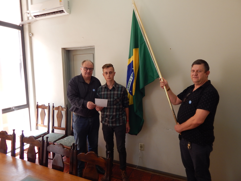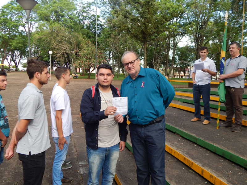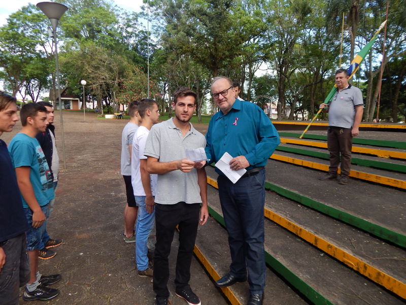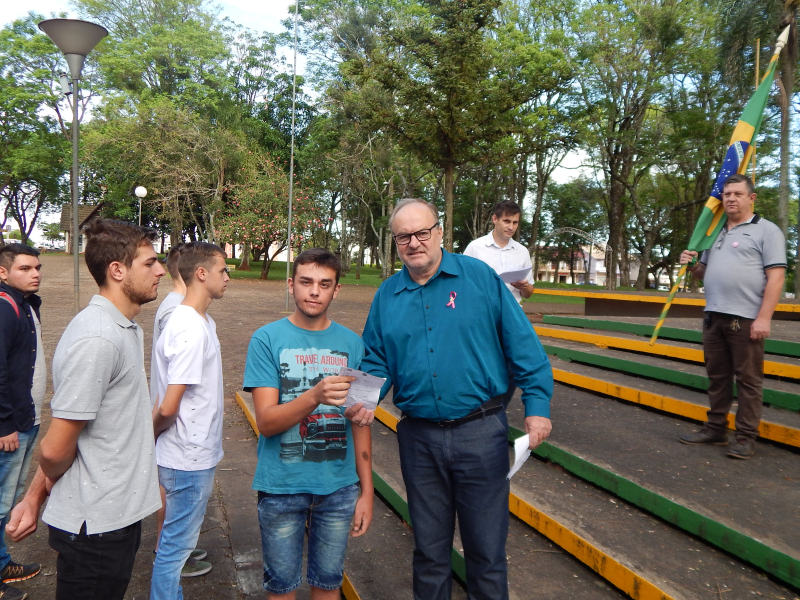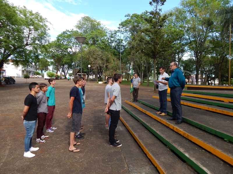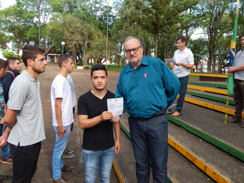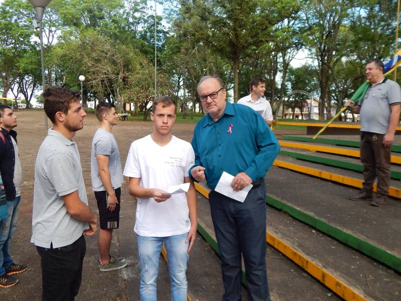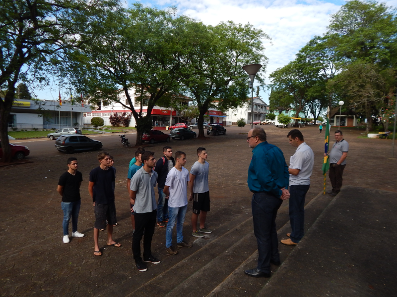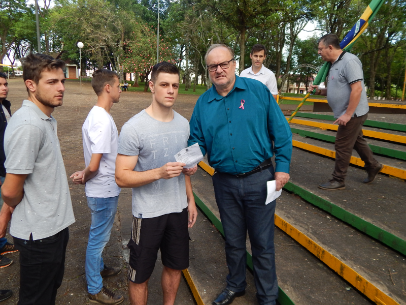 Na oportunidade, os jovens dispensados do Serviço Militar, prestaram o juramento à Bandeira. Se fizeram presentes no ato o Presidente da Junta de Serviço Militar prefeito João Scheeren Haas e o Secretario de Finanças Luis Carlos Mallmann.