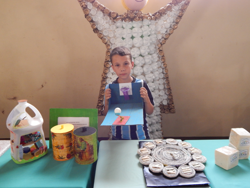 Representando o CRAS Manacá esteve presente a senhora Érica Carvalho Ribeiro, os alunos 8° ano Ruan, Henrique e Gustavo apresentaram a paródia “Cuidando da Natureza” letra original Lembranças de Porca Veia, e o aluno do 5° ano Andrei levou o brinquedo que confeccionou com material reciclado.