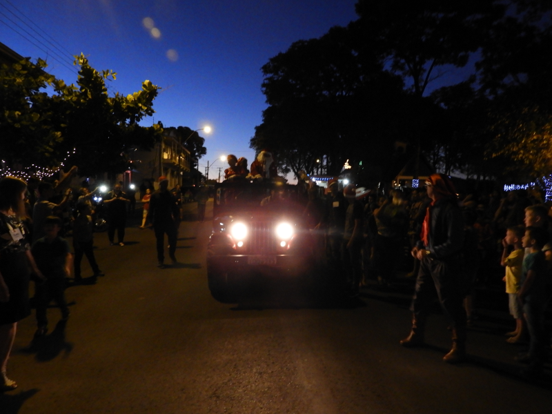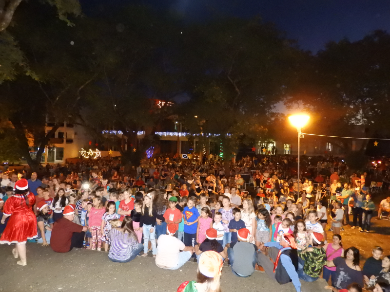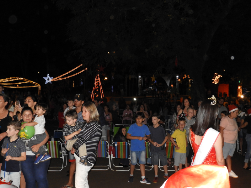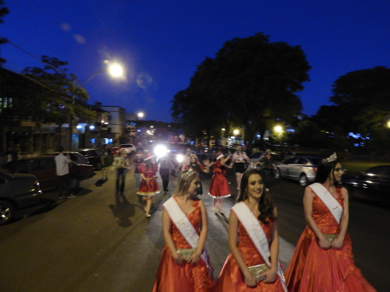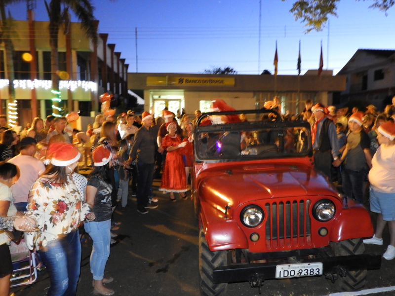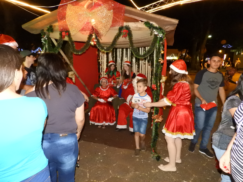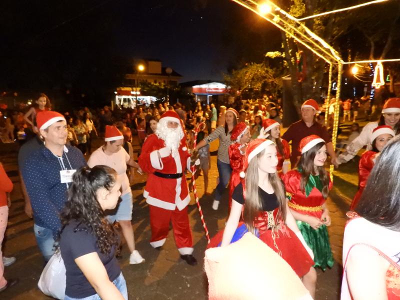 E, o momento mais esperado pelas crianças, a chegada do Papai Noel, contou com muita emoção. O bom velhinho foi trazido de jeep tendo como escolta os grupo de motoqueiros “Fora de Rota “. O Papai Noel estava acompanhado da Mamãe Noel, dos duendes e da corte do Município – Rainha e Princesas, o qual foi conduzido até o local da cerimônia. Na oportunidade, foi realizado o ato simbólico de entrega da chave da cidade ao mesmo, feita pelo prefeito João Scheeren Haas, em seguida, recebeu diversas crianças e também adultos em sua casa, que fica junto a Praça Tiradentes.