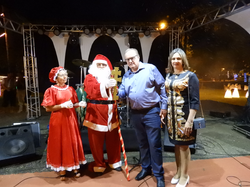 No final da tarde deste sábado, 08 de dezembro, aconteceu a abertura do” Natal Luz dos Anjos”, e a comunidade pôde apreciar a decoração natalina que a administração municipal realizou na Praça Tiradentes para a chegada do Papai Noel.