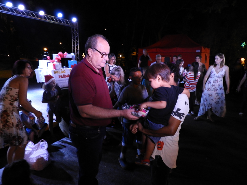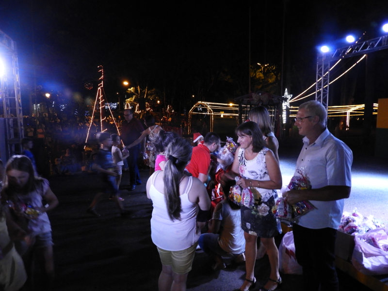 O momento mais aguardado pelos pequenos era a chegada do Papai Noel. Em meio ao público, distribuindo balas, o bom Velhinho acompanhado da Mamãe Noel e seus ajudantes chegavam para fazer a alegria da criançada presente. Logo após Administração Municipal com a ajuda do Papai Noel e da Mamãe Noel, distribuiu mais de 350 pacotinhos gratuitos para crianças presentes no evento com idade até 12 anos. Empolgadas, muitas crianças aproveitaram para registrar o momento tirando fotos e fazendo seus pedidos.
