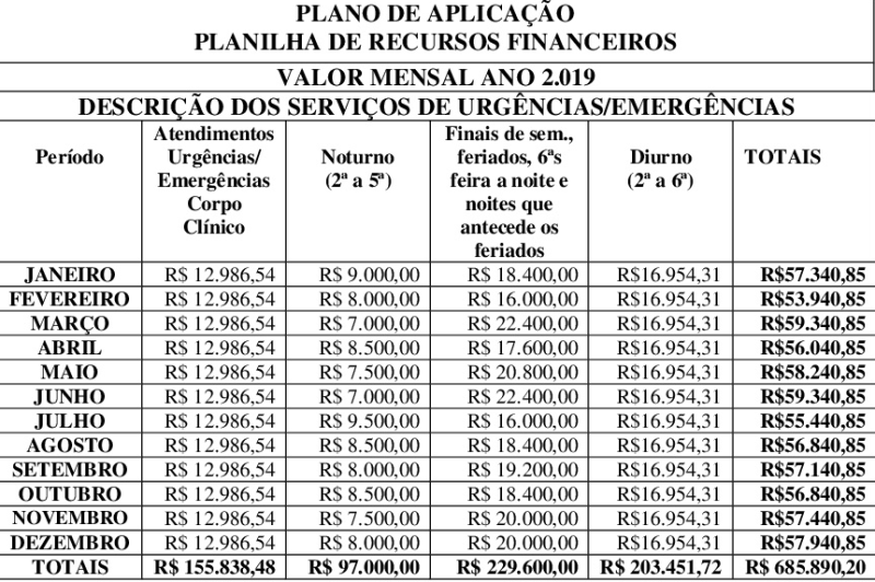 O convenio será destinado para o pagamento do atendimento urgências e emergências, noturno de segunda-feira a quinta-feira, finais de semana, feriados, sexta-feira à noite, noites que antecedem os feriados e diurno de segunda-feira a sexta-feira.