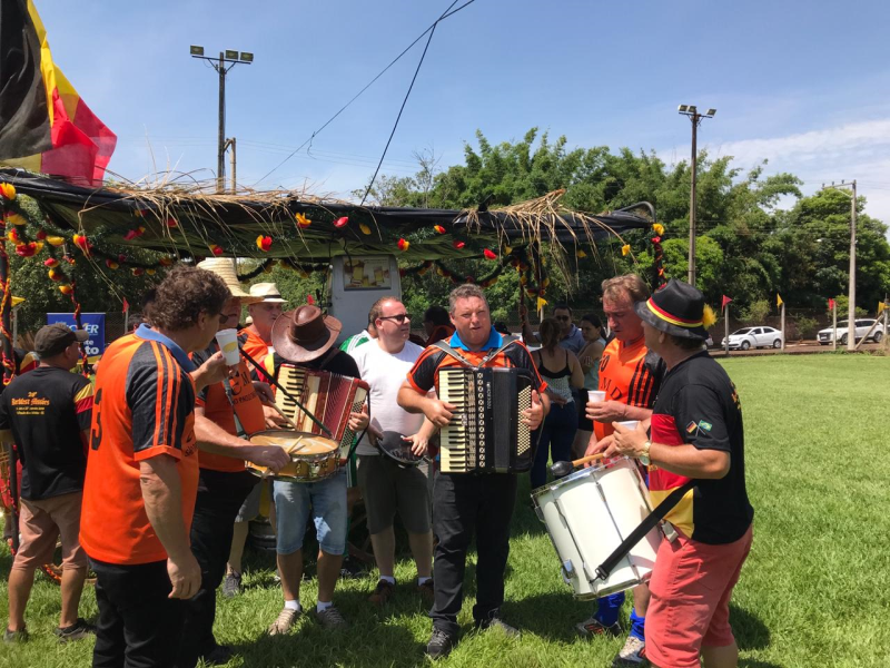 Durante a programação de sábado foi realizado o tradicional jogo do barril, onde o prefeito João Scheeren Haas participou da partida entre as autoridades e convidados.