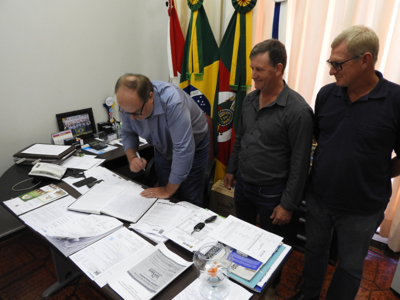 Na última sexta-feira, 05 de abril, o prefeito João Scheeren Haas passou ao cargo de Chefe do Executivo Municipal ao Presidente da Câmara de Vereadores Aristeu Machry, para participar da XXVII Marcha a Brasília em Defesa dos Municípios. Também acompanham o prefeito João Scheeren Haas em Brasília o vice prefeito Paulo Justen e o Secretário Municipal de Obras e Saneamento Moacir Issler.