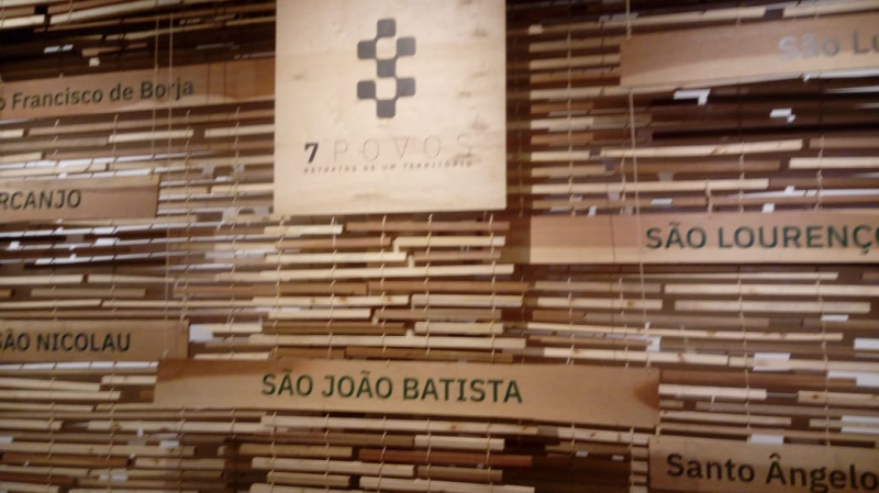 A exposição “7 Povos: Retratos de Um Território”, está sobre a responsabilidade da curadora Cláudia Ardións e projeto expográfico de Suzane Queiroz, que mostra aos visitantes o território das Missões, sua geografia, história, vida sociopolítica e cultural. Conta a narrativa da ocupação da região, desde mapas antigos até o momento atual, como se formou e no que se tornou o território das Missões, aproximando o visitantes dos bens que constituem o Patrimônio Cultural missioneiro. O público irá transitar pelos caminhos dos Sete Povos das Missões Jesuíticas-Guarani em mesas digitais interativas que exploram, em detalhes, a cartografia do território. As fotos ganham vida em realidade aumentada em tablets e celulares, em que o observador ultrapassa o plano da fotografia e é levado para a cena em movimento, com sons e texturas. O espaço conta também, com área educativa para crianças, com jogos e atividades formulados especialmente para o público infantil, com liga-pontos digital das línguas faladas na região das Missões, jogos da memória e quebra-cabeças sobre esta rica paisagem cultural.