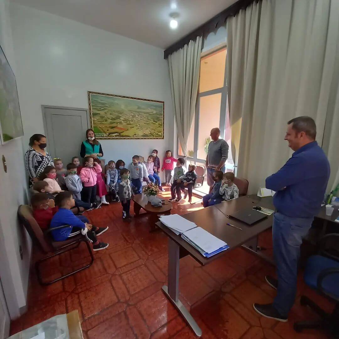 👔 O intuito da visita era apresentar as crianças para o Prefeito e Vice-Prefeito, além de conhecer o prédio da Prefeitura.