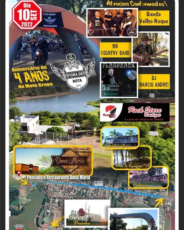 🏍 O evento acontecerá no próximo dia 10 de setembro na Pousada Dona Maria com acampamento no dia 09 de setembro. Haverá show com Bandas de Rock, café da manhã 0800 para os Motociclistas que realizarem sua inscrição com os organizadores do evento.