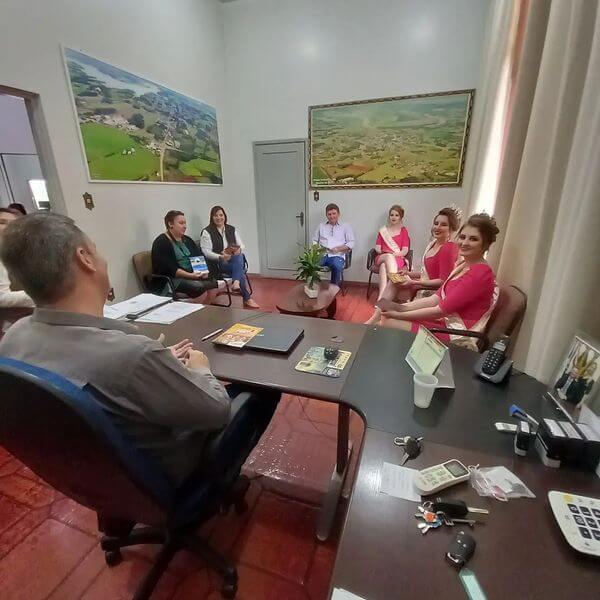 📆 Nesta sexta-feira(21), o Prefeito Municipal Fernando Mattes Machry recebeu em seu Gabinete a visita da Comitiva de Divulgação e Soberanas de Salvador das Missões para entregar ofício de convite para a 7° November Fest.