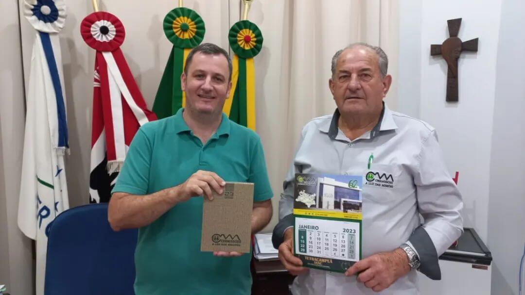 🤝 Na oportunidade, Sr. Diomedes agradeceu a parceria do Município com calendários e agendas para o ano 2023. E também, apresentou os investimentos e projetos da Cooperativa para o próximo ano.