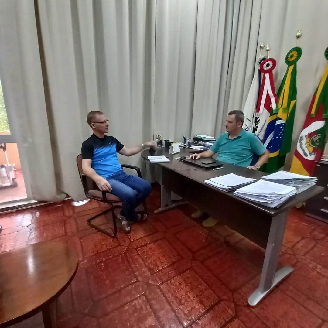 Nesta quinta-feira(23), o Prefeito Municipal Fernando Mattes Machry recebeu em seu Gabinete a visita do novo Padre da Paróquia Roque Gonzales, Pe. Valcir Luís Puhl.
