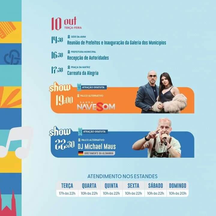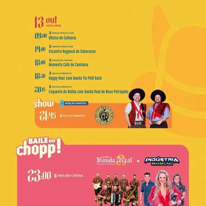 🍺 A Oktoberfest Missões do lema "A gente vive essa alegria", tem atrações para todos os públicos, como: atrações infantis, parque de diversões, humor, bailes de chope, feira comercial e gastronômica e muito mais para trazer a família e curtir esta grande festa.