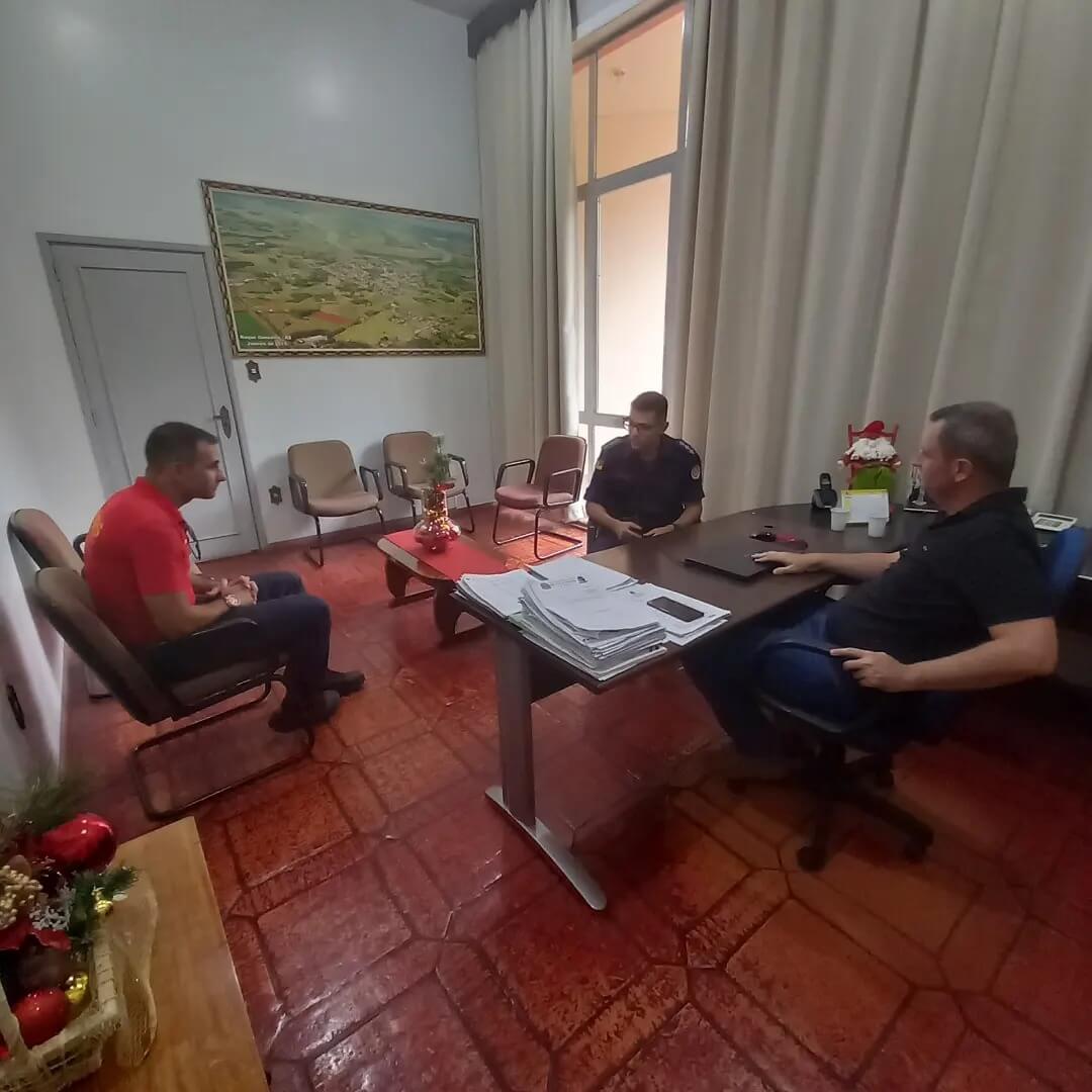 📆 Nesta quinta-feira (14), o Prefeito Municipal Fernando Mattes Machry recebeu em seu Gabinete a visita do Capitão Leonardo dos Santos Freitas, novo comandante da 1° Cia do 11° Batalhão do Corpo de Bombeiros Militar, acomponhado do SD Cristian, para tratar sobre a Operação Verão 2023-2024 Prainha de Roque Gonzales, que acontece oficialmente nesta sexta-feira (15), e das expectativas de um aumento significativo nos visitantes em virtudes das altas temperaturas para este verão.