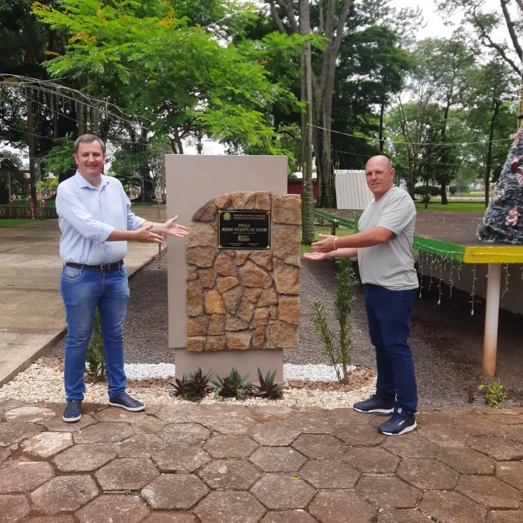 📆 Na manha desse sábado (23), a Administração Municipal fez a cerimonia de descerramento da placa com o novo nome em homenagem ao ex-prefeito Adair Vicente de Brum (in memorian) sendo uma forma de reconhecer e valorizar os serviços prestados por essa pessoa à comunidade durante seus mandatos. Essa homenagem é uma maneira de eternizar o legado e a contribuição do ex-prefeito para o desenvolvimento da nossa cidade.
