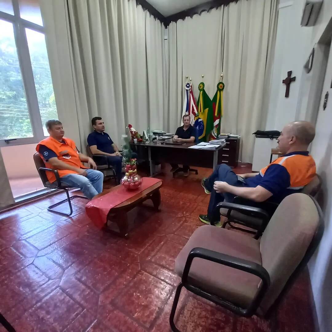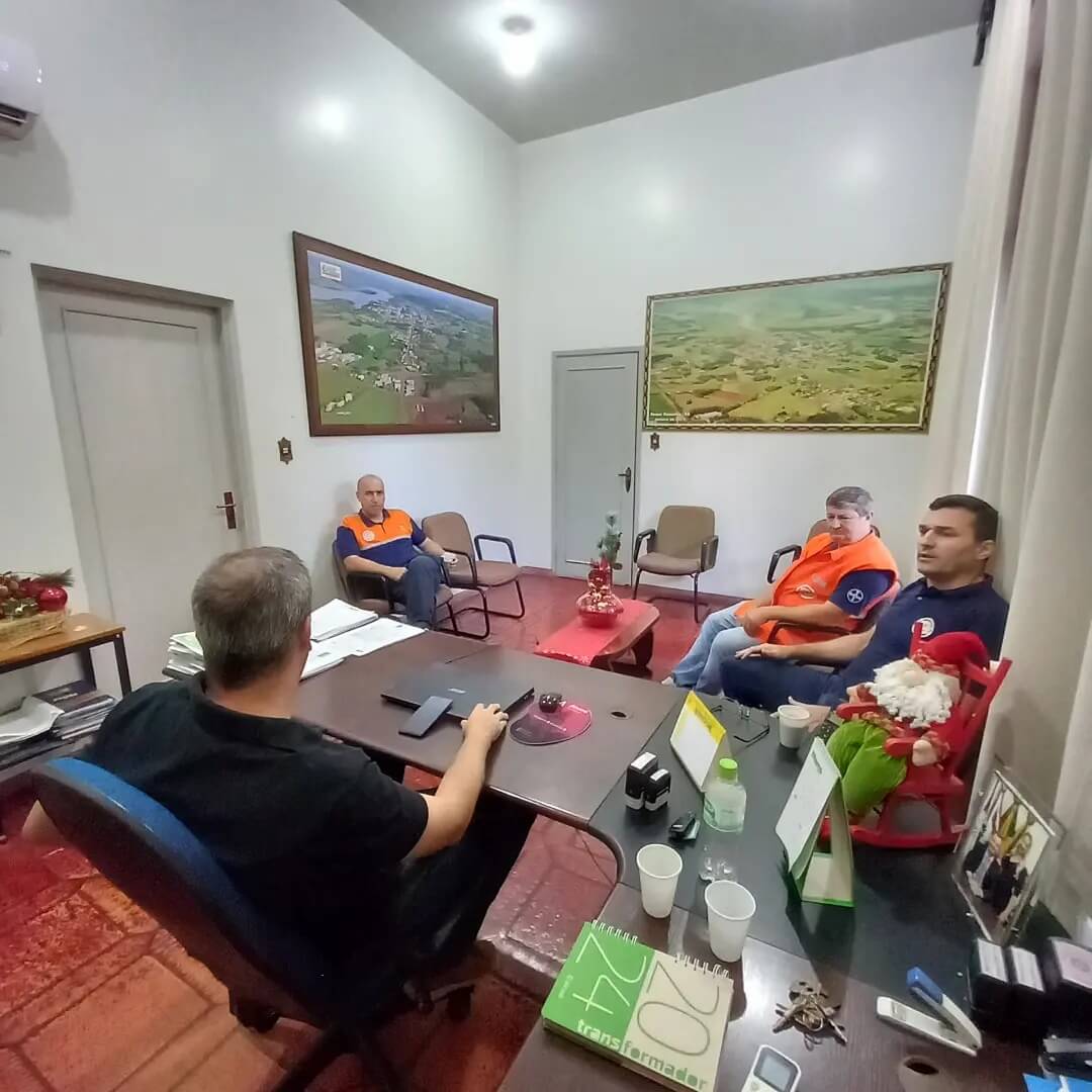 📆 Nesta quinta-feira (04), o Prefeito Municipal Fernando Mattes Machry acompanhado do Coordenador Municipal da Defesa Civil Sr. Emir Schwarzer receberam a equipe da Coordenadoria Estadual de Proteção e Defesa Civil - CREPDEC 5 comandada pelo 1° Tenente Cristiano Machado que esteve em Roque Gonzales auxiliando na elaboração do decreto de situação de emergência por consequência dos estragos causados pelo vendaval que afetou o Município.