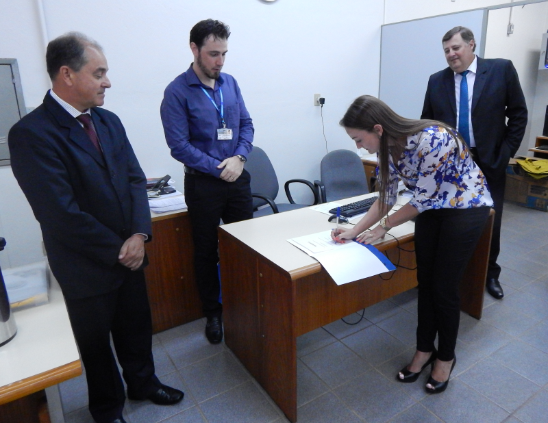 Após assinatura do contrato, o Gerente Executivo Márcio Kaiser ressaltou o investimento em programas de educação e formação de profissionais do Banrisul, do qual a nova gerente fez parte. O Prefeito Municipal João Scheeren Haas saudou a nova gerente e ressaltou a importância da parceria com a instituição. Cristiane é a primeira mulher a assumir este cargo na agência do Município e, depois de receber as boas vindas, cumprimentou seus novos colegas e falou sobre dar prosseguimento ao trabalho que já vem sendo desenvolvido na agência.