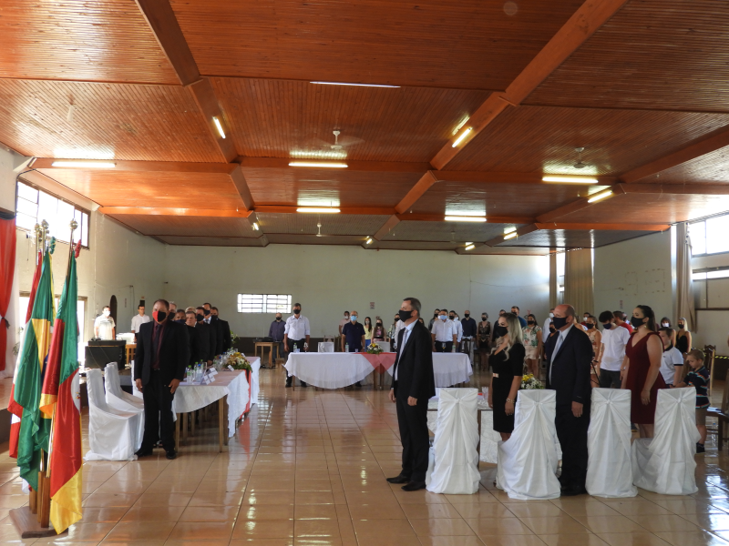 A solenidade iniciou com a abertura presidida pelo vereador com mais recentemente exercido o cargo da Mesa Diretora, Aristeu Machry, que conduziu a posse dos nove vereadores eleitos Adelar Barbosa dos Santos, Aristeu Machry, Delmar Goulart, Iraci Luft, Joel Silveira, Moacir Issler, Otavio Kohl, Paulo Justen e Rose Fenner. Em seguida, empossou o prefeito Fernando Mattes Machry e o vice José Alfredo Kuspke, que prestaram juramento e assumem o mandato para o período 2021/2024.