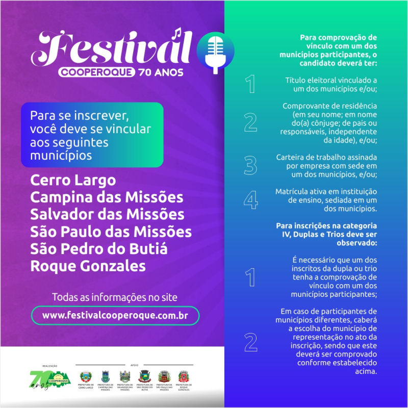 O regulamento está disponível em https://festivalcooperoque.com.br/index.php?acao=regulamento