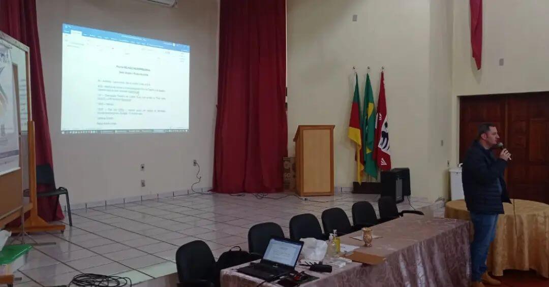 📆 Na manhã desta quinta-feira (14), o Prefeito Municipal Fernando Mattes Machry participou da abertura da reunião da microregional da Emater no Auditório da Casa de Cultura Nelson Hoffmann.