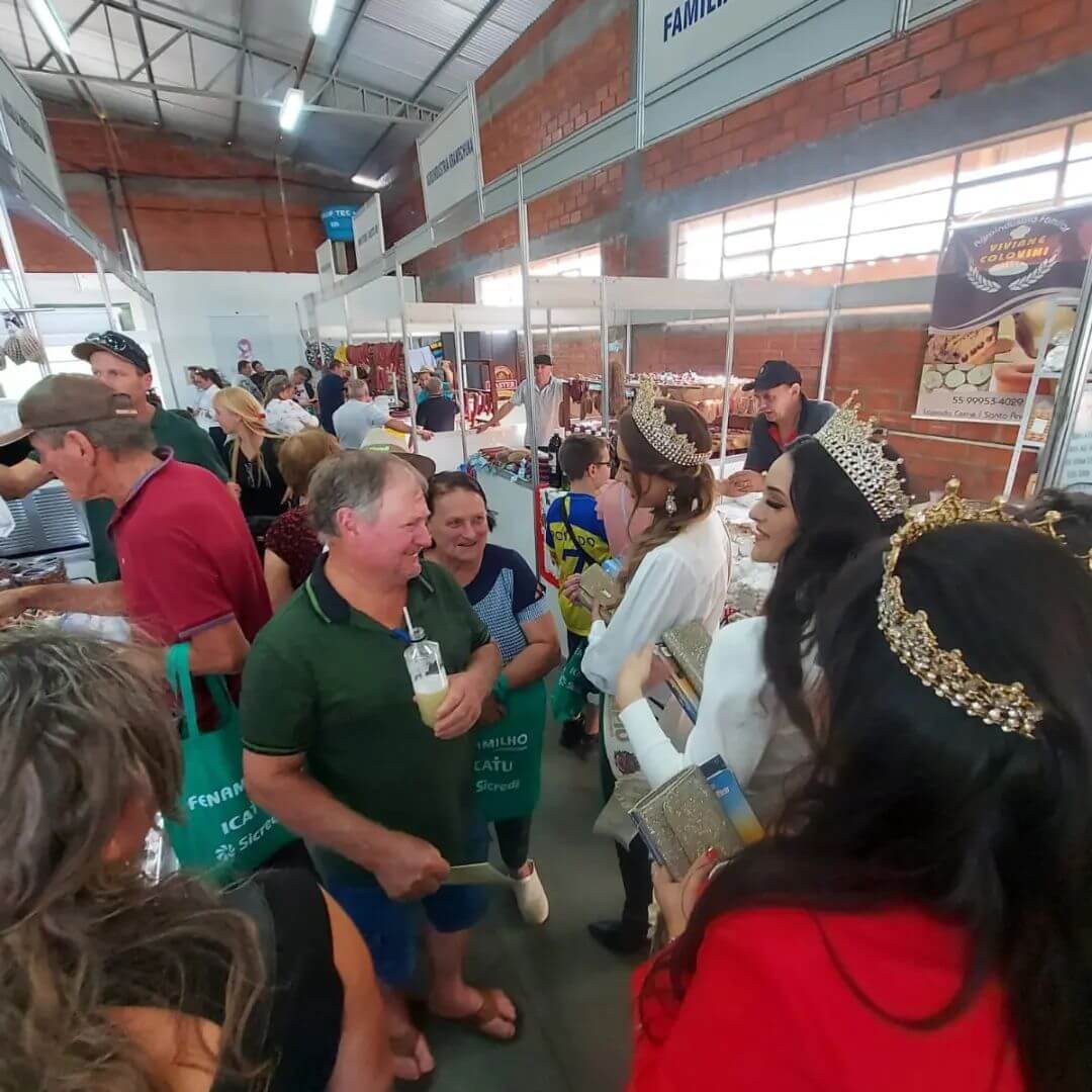 📆 Neste domingo (23), as Soberanas do Município: Rainha Camila, 1° Princesa Bruna e 2° Princesa Jéssica acompanhadas da Diretora do Turismo Luane Marasca Bronzoni e a Diretora da Educação Gicelda Ferreira Ledur estiveram na Feira I ternacional do Milho - FENAMILHO - Raízes que conectam pessoas!".