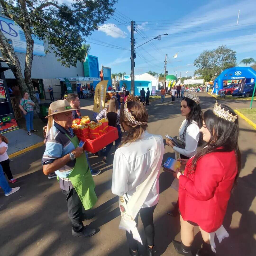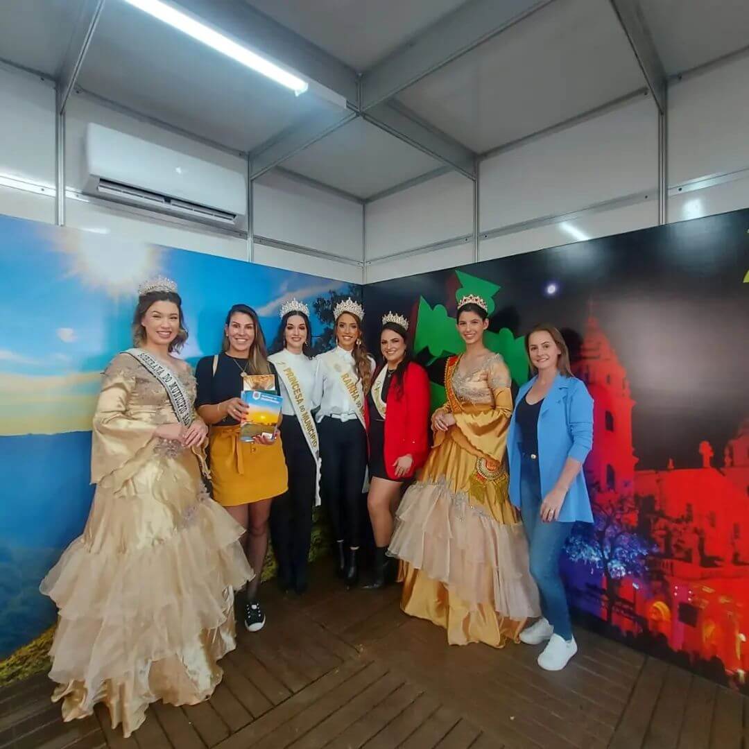 👑 As Soberanas de Roque Gonzales aproveitaram o espaço da feira para divulgar as atrações Turísticas do Município e prestigiar este grandioso evento.